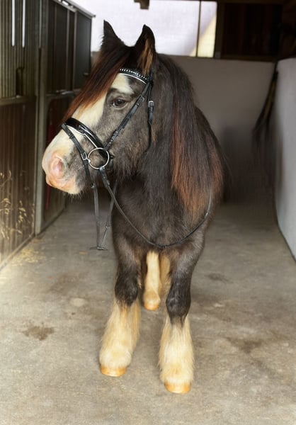 ✨ Irish Cob Gelding – Stunning Youngster in Unique Color Seeks New Home ✨ Breed: Irish Cob Gender: Gelding Date of Birth: May 6, 2023 Height: Currently approximately 14.2 hh – still growing, expected final height around 14.4–14.6 hh Color: Rare splash-colored brown with a beautiful blaze and four white legs – a real eye-catcher Pedigree: Fully documented Description This charming Irish Cob gelding in a rare splash-colored brown coat is not only a visual highlight but also impresses with his exceptionally sweet, calm, and human-oriented nature. He was raised appropriately in a herd environment, well-socialized, and very compatible with other horses. Training Level Despite his young age, he has been gently and age-appropriately trained. He already knows: - Saddle and bridle - Groundwork - Lunging in all three basic gaits - Rider’s weight - Walks outside the farm During walks, he is completely fearless and confident. He is familiar with trains, tractors, dogs, cats, cows, cyclists, and much more – all of which do not disturb his composure. In daily handling, he remains well-behaved, reliable, and patient. He is always calm when groomed or when around children. He willingly gives all four hooves, has been regularly introduced to the farrier, and is barefoot without issues. Character - Very affectionate and human-oriented - Calm, composed, and stress-resistant - Well-socialized & herd-safe - Ideal for families, children, and therapeutic riding Health - Regularly dewormed - Vaccinated (Influenza & Tetanus) - Healthy, without vices or abnormalities Additional Information For now, he can continue to enjoy his time in the herd. If no new home is found soon, he will be gently backed in spring, further expanding his riding possibilities. A viewing is possible at any time by prior arrangement, and transportation can be organized upon request. Has he caught your interest? I am happy to send videos or answer any further questions.
