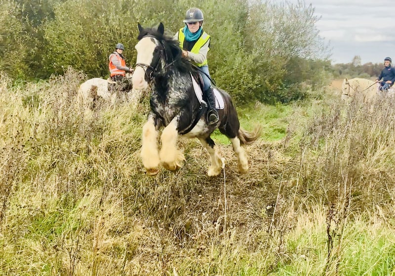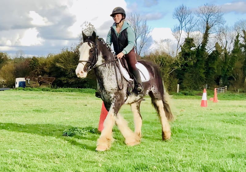Cian, ein wirklich auffälliger, 4-jähriger (bald 5-jähriger) Blue Roan Cob Wallach, derzeit ca. 1,57 m groß und noch im Wachstum. Cian ist eine echte Schönheit – der klassische „vier Beine an jeder Ecke“-Typ mit hervorragender Konformation, starkem Fundament und einer außergewöhnlichen, auffälligen Fellfarbe, die ihn überall herausstechen lässt. Er ist genau die Art Pferd, nach der man sich umdreht – mit Ausstrahlung, Persönlichkeit und einem freundlichen Blick, der seine sanfte Natur widerspiegelt. Cian hat ein wundervolles Temperament. Er ist ein freundliches, gutmütiges Pferd, das Aufmerksamkeit liebt und einfach ein Vergnügen ist, im Stall zu haben. Unter dem Sattel ist er ruhig und leicht zu reiten, mit einer sehr willigen und ehrlichen Einstellung, die ihn zu einem echten Partner und Freude für seinen Reiter macht. Er arbeitet schön im einfach gebrochenen Gebiss, reagiert gut auf die Hilfen, ohne je scharf oder übermütig zu sein. Er ist nicht faul – er bietet einfach jedes Mal einen angenehmen, unkomplizierten Ritt. Unter dem Sattel zeigt Cian großes Potenzial für die Zukunft. Er wurde sorgfältig und korrekt ausgebildet und hat eine solide Grundlage in der Dressurarbeit. Er bewegt sich in drei ausgewogenen, bequemen Grundgangarten und beginnt, eine natürliche Losgelassenheit und einen gleichmäßigen Rhythmus zu zeigen, die sich mit Zeit und Erfahrung weiterentwickeln werden. Über Sprüngen ist er sehr ehrlich und mutig – er nimmt alles in seinem Schritt und hat Freude am Springen. Er zeigt großes Potenzial für Jagden, Geländereiten und allgemeine Aktivitäten im Reitverein. Im Gelände ist Cian ein absoluter Star. Er geht allein oder in der Gruppe, ist verkehrssicher und vernünftig in offenem Gelände. Er geht bereitwillig über Gräben, durch Pfützen und über Felder – immer neugierig und mit Freude an seiner Umgebung. Er ist genau das Pferd, das jeden Ausritt zu etwas Besonderem macht – egal, ob es ein entspannter Spaziergang oder ein Tag auf der Jagd ist. Cian würde in eine Vielzahl von Zuhause passen. Er wäre ein tolles Mutter-Tochter-Pferd, eine fantastische Ergänzung für eine Reitschule oder ein großartiger Allrounder für jemanden, der einen zuverlässigen, schönen Partner zum Ausreiten, Jagen oder für lokale Turniere sucht. Er ist vielseitig, ehrlich und hat ein Traumtemperament. Er ist unkompliziert beim Beschlagen, Verladen, Einfangen, Scheren, Reiten und im Straßenverkehr. Er hat keine Stallmängel, ist offen für jede tierärztliche Untersuchung und bereit, in sein neues Zuhause zu ziehen. Der Preis beinhaltet die Lieferung zu Ihrem Hof überall im Vereinigten Königreich, und wir bieten einen Umtausch an, falls Sie nicht vollständig zufrieden sind. Scrollen Sie nach unten, um sein Video anzusehen und zu sehen, wie besonders er in Aktion ist. Für Anfragen oder um einen Besichtigungstermin zu vereinbaren, rufen Sie mich gerne jederzeit unter 00353 868077626 an oder schreiben Sie eine E-Mail an gertytynan@gmail.com. Cian ist wirklich das komplette Paket – hübsch, freundlich und ehrlich – ein seltener Fund, der für jemanden der absolut perfekte Partner sein wird.