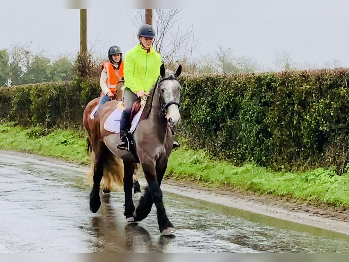 5-jähriger Irish Cob Wallach – seltener Roan – kräftiger, traditioneller Typ George ist ein 5-jähriger Irish Cob Wallach in einer wunderschönen und seltenen Roan-Farbe. Er ist ein echter, traditioneller Typ mit „viel Bein in jeder Ecke“, kräftigem Fundament und guter Knochenstärke. Ein korrekt gebautes, kompaktes Pferd mit freundlichem Ausdruck und einem ausgesprochen angenehmen Wesen. Er ist besonders unkompliziert und leicht zu reiten und eignet sich ideal als Freizeit- und Ausreitpferd, als Mutter-Tochter-Pferd oder auch für den Einsatz im Schulbetrieb. Auf dem Reitplatz ist er ordentlich gearbeitet, geht brav auf dem Zirkel und zeigt sich ausgeglichen und willig. Er vermittelt Sicherheit und ist stets bemüht, alles richtig zu machen. Auch kleine Sprünge machen ihm Spaß. Er wurde über einzelne Hindernisse sowie kleine Parcours und Geländehindernisse gearbeitet und ist hier bis ca. 90 cm mit einem Reitanfänger gesprungen. Dabei zeigt er sich ehrlich und unkompliziert, ohne übermäßig ehrgeizig zu sein. Der Schwerpunkt liegt bei ihm ganz klar auf einem vielseitigen, angenehmen Freizeitpartner. Im Gelände ist George absolut zuverlässig: • Geht alleine oder in der Gruppe ins Gelände • Verkehrssicher • Gelassen auf freiem Feld • Unkompliziert in neuer Umgebung Er bleibt ruhig und kontrollierbar und genießt entspannte Ausritte. Auch im täglichen Umgang ist er absolut pflegeleicht: • Problemlos beim Schmied • Lässt sich gut verladen • Einfach einzufangen • Brav beim Scheren • Im gesamten Handling unkompliziert George ist ein sehr menschenbezogener, freundlicher Wallach mit einem tollen Charakter. Er zeigt keine Stalluntugenden und kann jederzeit tierärztlich untersucht werden. Der Preis beinhaltet die Lieferung zu Ihrem Stall innerhalb des Vereinigten Königreichs. Umtausch ist möglich, falls Sie nicht zufrieden sind. Bitte schauen Sie sich sein Video an und rufen Sie jederzeit gerne an unter 00353 868077626 oder schreiben Sie eine E-Mail an Gertytynan@gmail.com.