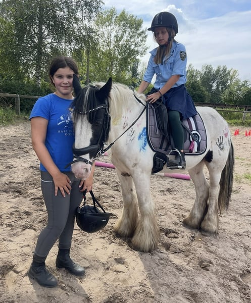Se vende este hermoso semental Irish Cob de 7 años con una altura de aproximadamente 145 cm. Cookie es, sin duda, el compañero más simpático y leal que se puede tener. Es muy sensible a las ayudas y se monta de manera bien equilibrada, ¡y es muy relajado en su andar! Tiene una paciencia de ángel y unos nervios de acero absolutos. Este semental impresiona con su buena actitud de trabajo y es completamente seguro en el tráfico. ¡También ha sido montado a la brida! Conoce cómo superar obstáculos y ama las salidas al campo. Ya ha recorrido algunos senderos de campo y muestra una gran alegría al saltar. En Cookie siempre se puede confiar, ¡es un verdadero amigo al que se le quiere acariciar todo el día! Le encanta que lo acaricien y disfruta de la atención de muchos niños a su alrededor. En las salidas al campo es muy fuerte de nervios y valiente. Tiene un ritmo agradable y tranquilo y es manejable por cualquier niño. Es muy cariñoso y sociable. ¡Es el pony de ensueño absoluto para reingresantes, niños/jóvenes, escuelas de equitación, pero también se puede utilizar como pony de terapia! Conoce la monta en grupo y no tiene problemas con ello: va en la parte delantera, en el medio, pero también en la parte trasera.