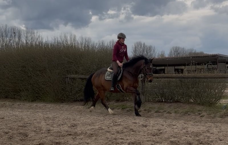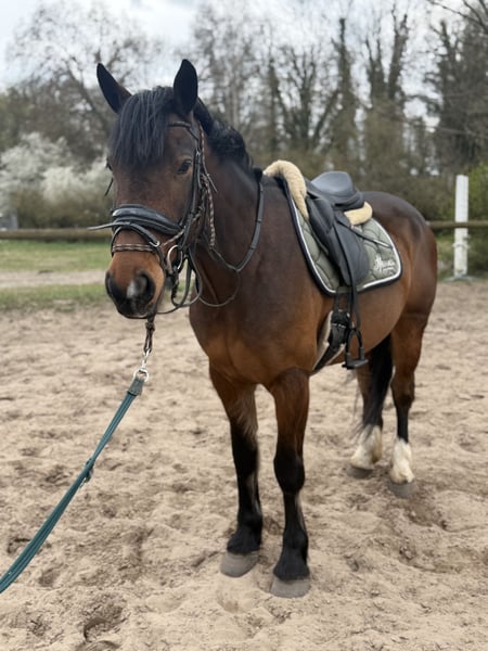 Zum Verkauf steht diese absolute Ausnahme Stute Chrissy hat eine unfassbar tolle Arbeitseinstellung, mit Freude am Sprung, aber auch in der Dressur ist sie sehr motiviert und möchte stets gefallen. Die Stute verfügt über sehr gute Grundgangarten und weiche/ schwungvolle Bewegungen. Ein echtes Allrounder Pferd mit toller Arbeitseinstellung und sehr guten Nerven. Sie hat einen menschenbezogenen und liebevollen Charakter. Bei der Arbeit ist sie absolut willig und möchte gern gefördert werden! Chrissy hat ein angenehmes GO, ist nicht hochsensibel am Bein und hört hervorragend auf Gewicht und Stimme! Somit auch für ambitionierte Freizeitreiter geeignet! Die Maus ist absolut Geländesicher und lässt sich von absolut gar nichts beeindrucken. 5 Jahre alt Ca 155 Stm sehr gut abdeckend durch ihren kräftigen Körperbau Sie ist absolut zuverlässig und auch brav im Gelände! Absolutes Traumpferd das man so schwierig anderweitig finden wird! Sie wird ihren neuen Besitzer sehr glücklich machen. Ein Pferd, das schnell lernt, unverbraucht ist und ein absolut tolles Reitgefühl vermittelt!