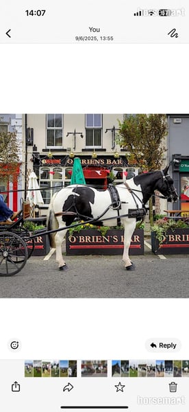 Lily Ann is a 6 year old homebred traditional Cob mare. She stands at 15.3hh with 9 and a half inch clean quality bone. Has won many Cob in hand classes at county level. Drives and hacks out in the heaviest of traffic and agricultural machinery. Ridden regularly by an 11 year old girl. Safe, reliable and steady, she is super bombproof and has so much love to give. Easy to handle in every way possible, good to shoe, Clip, wash, catch and load. Very good conformation, clean limbed and no vices. Lily Ann would suit a family share. Driving enthusiast or driving business. Happy hacking, showing, riding club, pony club and hunting. She is very versatile.! Video Below; https://youtube.com/shorts/i0CUXjuwilk?si=fknXcREqrLUWKSM1 Everything available to view and try if you can travel to the yard. Potential buyers need to WhatsApp us a video of their riding ability through to - Click here to reveal phone number - a nd we can assess suitability. Located in Co.Cork. Worldwide shipping available please contact us for a quote.