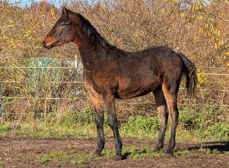 Hengstfohlen, geb. April 2025, HWSD: N/N Coolcom JJ x Annaveigh Mari Twinstar JJ Mocha Boy (gesprochen "Mocca") ist ein groß rahmiger, freundlicher und neugieriger Connemara-Jährling. Er ist noch auf der Suche nach einem neuen 5 Sterne zuhause. Er wächst zur Zeit hier auf dem Gestüt in einen Herde mit anderen Jungpferden und Fohlen auf. Natürlich wurden regelmäßig Hufe gemacht, entwurmt und geimpft. Mocha wurde mit einer Fohlenprämie ausgezeichnet, hat schon jetzt sehr gute, elastische Bewegungen, das coole Gemüt seiner Eltern und eine wunderschöne, schwarzbraune Farbe. Er wird ca. 1,52 - 1,55m oder etwas darüber werden und auch große Reiter gut abdecken. Mocha wird mit seiner Unerschrockenheit ein toller Partner für alle Sparten der Reiterei werden. Nähere Infos gern per WhatsApp/Anruf: 0049 160 4052656