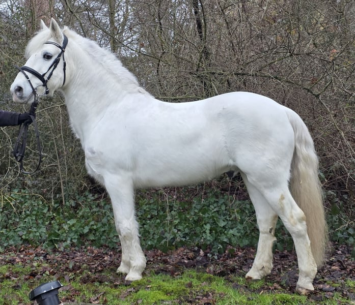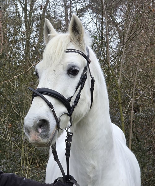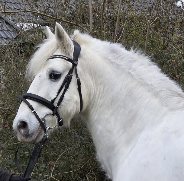 Snowball Davy is a approximately 14.9 hh gelding. Snow also comfortably carries larger riders. He has a solid foundation and is a true pony at heart. :-) Snow has been in Germany for a few weeks now. In his home country, he was used as a jumping and cross-country pony. Snow is a wonderful family pony for "big and small". He is versatile and can be used in various disciplines. In dressage, Snow is at a good beginner level, with room for further development, and he jumps an A-level course. However, there is still more to his jumping potential — Snow has even more scope! Snow is such a fantastic pony, and he is also an absolute sweetheart in handling. He is herd-friendly, barefoot, and has a current veterinary health certificate. For more information, we look forward to your call at: 0177/2721831.
