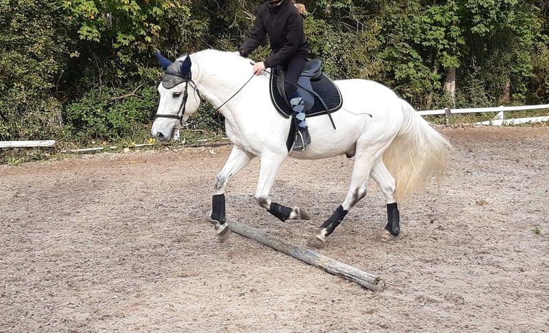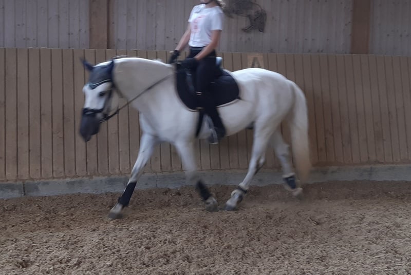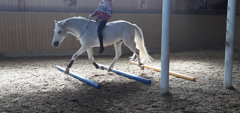 Der 12.5-jährige Connemara-Mix-Wallach mit einem Stockmass von 148 cm ist vielseitig einsetzbar: Dressur, Gymnastikarbeit inkl. Sprünge, Halsringreiten, Bodenarbeit, ausreiten usw. Besonders bei der Bodenarbeit und an der Longe zeigt er grosse Freude und seinen Spass an der gemeinsamen Interaktion. Während der Turnier-Springsport nicht seine Welt ist, hat er am „Tag der Jugend“ bewiesen, dass er in Prüfungssituationen ein braver und verlässlicher Partner ist. Im Gelände ist er bevorzugt zu zweit oder mit mehreren Pferden unterwegs. Er ist kein reines Anfängerpony, zeigt sich aber an der Longe gegenüber jüngeren Kindern stets geduldig und vorsichtig. Jugendliche ab ca. 9 Jahren mit guten Reitkenntnissen können ihn alleine reiten. Er hat mit einem 10-jährigen Kind das Attest und Diplom erfolgreich bestanden. Wir wünschen uns für diesen verspielten Wallach, der im Sommer das Wasser liebt, einen festen Platz als „Nummer 1“. Da er Beständigkeit schätzt und häufige Reiterwechsel nicht mag, suchen wir ein Zuhause mit maximal drei festen Bezugspersonen im Freizeitbereich. Er ist lückenlos geimpft, entwurmt und zahnärztlich kontrolliert. Auch beim Hufschmied zeigt er sich sehr anständig und ist sowohl barhuf als auch mit Beschlag vertraut.