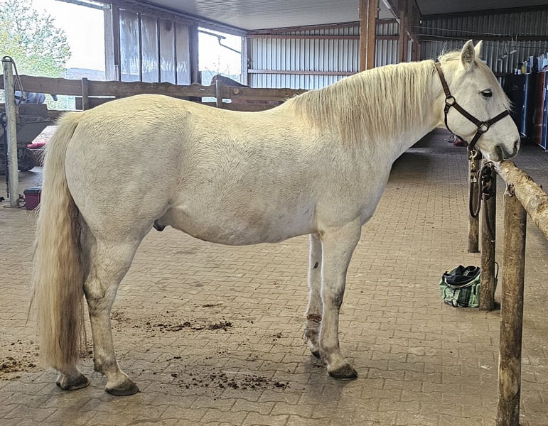Morley ist ein 12 Jähriger Connemara Wallach. Ausgebildet wurde er im Jahr 2022 bei Jan Zweers, er ist Western geritten und zeigt hier viel Freude und Potenzial. Alleine Ausreiten im Gelände ist mit ihm auch kein Problem. Er hatte 2020 und 2024 zwei Hufrehe Schübe, Röntgenbilder wurden nach beiden gemacht und sind vorhanden, er hat keine Rotation oder Hufbeinsenkung, sollte aber nicht auf die Koppel, Boxenhaltung kommt für ihn auch gar nicht in Frage. Im Moment lebt er in einem Aktivstall mit großer Lauffläche und über 30 Pferden im Herdenverband. Hier zeigt er sich sozial und ist nett zu Mensch und Pferd. Er ist vorne beschlagen, da er auf Schotter fühlig ist. Ich wünsche mir eine/n Besitzer/in für ihn wo er regelmäßig gearbeitet und gefördert wird. Bei weiteren Fragen kontaktieren Sie mich einfach. Videos auf Anfrage.