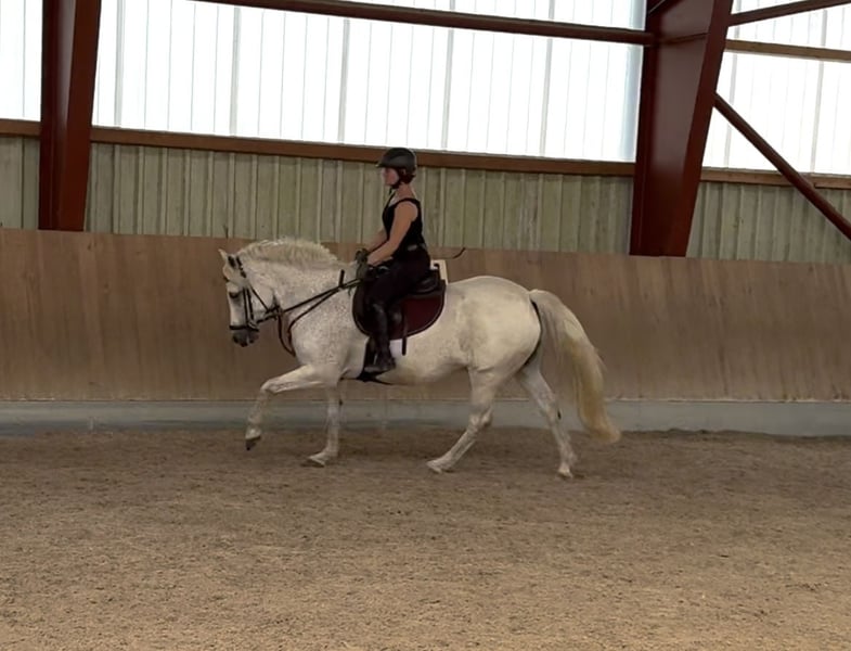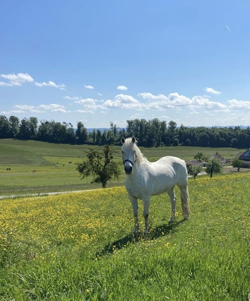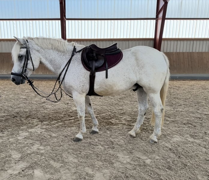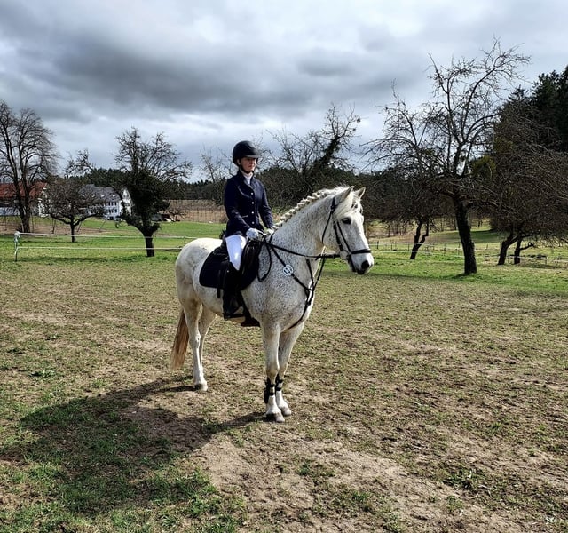 Starlight, a beautiful gelding of perfect size - a brave all-rounder for all disciplines. With an ideal height, he accommodates taller riders but is also very easy to ride for smaller ones. A bit of dressage, a bit of jumping (currently won the show jumping competition with an 8 score!), a bit of cross-country - Starlight enjoys everything and always greets his person friendly. He carried his then young rider through the first riding badges, the first competitions, and across the countryside - now he is sadly looking for a place where he will be just as loved. He is super soft to sit on and very easy to handle, both on the ground and under saddle - the perfect beginner horse or also ideal for a mother-child duo. He is very compatible with other horses and is used to daily turnout; bad habits are foreign to him. He is well-behaved with the farrier, during transport, and in all situations. Please contact the owner directly: +49 15563 345918