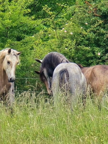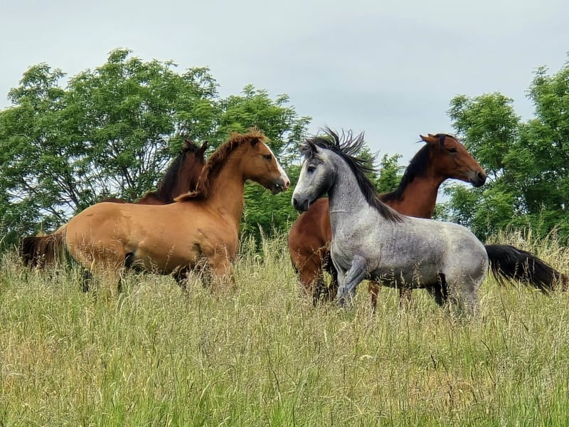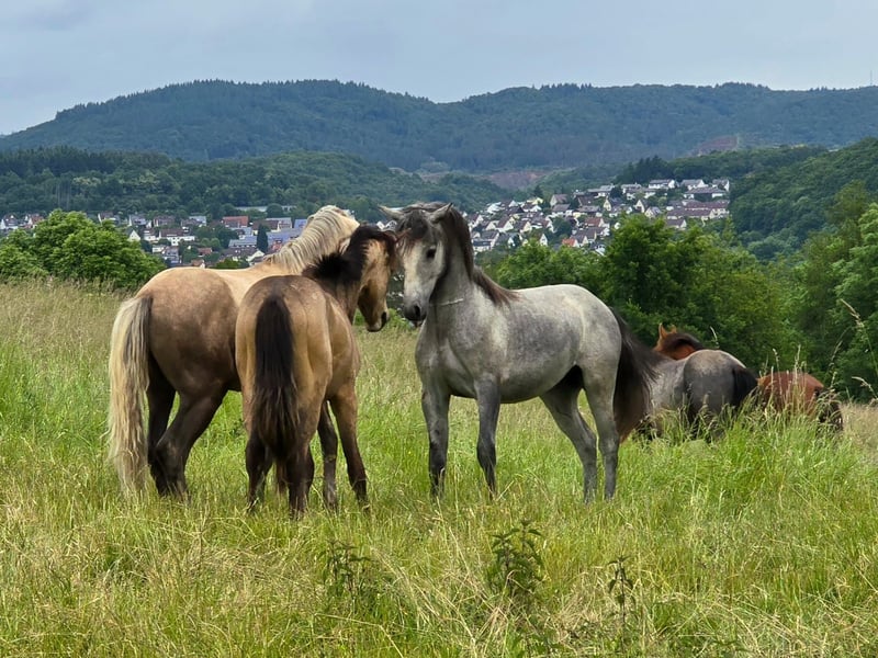 Wunderschöner korrekter Jährling mit schöner Oberlinie, schickem Ponykopf und mit herausragenden flüssigen Bewegungen. Er erhielt die Fohlenprämie mit 8,2. Crystal Silverstar * 2024 Er stammt ab von unserem Bundesprämienhengst Marvellous Simon, der zweimalig Bundessiegerhengst der FN wurde. Simon wurde hocherfolgreich im Turniersport im Springen und in der Dressur eingesetzt er wurde zwei Jahre hintereinander Bezirksmeister in beiden Disziplinen. Ein Pony das keine Wünsche offen lässt. Simon vererbt konsequent seinen wunderschönen Rassetyp, seine Rittigkeit und seinen umgänglichen ausgeglichenen Charakter. Die Mutter von Silverstar ist unsere hocherfolgreiche Verbandsprämienstute Rosedale Pandora. Sie ist mehrfache Landessiegerin aller Rassen und Bundessiegerstute Connemara beim ZfdP. 2024 Reservesiegerstute der Bundesstutenschau der FN in Münster Handorf. Eine einfülsame freundliche Stute die gerne mitarbeitet und hervorragende Bewegungen hat. Silverstar ist halfterführig, schmiedefromm und geht einwandfrei auf den Anhänger Ein Pony für den ambitionierten Reiter, ein echtes Familienpony das für alle Sparten des Reitsports geeignet ist. Er wächst in einer Junghengstherde auf und kann bei Bedarf auch gerne zur weiteren Aufzucht bei uns bleiben. Für weitere Details gerne melden Connemara Gestüt Crystal Claudia Quasnitza