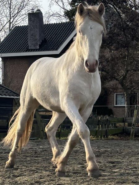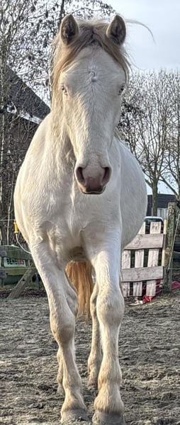 Lieve betrouwbare knappe vent genaamd Max! Hij is een charmante Connemara ruin waar veel mensen echt van zullen dromen. Zijn opvallende Cremello kleur geeft hem een bijzondere uitstraling en maakt hem een echte sprookjes pony! Met zijn warme lieve uiterlijk en soms ook een beetje ondeugend zal hij zeer geschikt worden met juiste opleiding voor kinderen. Hij is absoluut geen heethoofd. Werkt wel voor je en luistert heel goed naar stem commando’s , en dan moet hij nog 3 jaar worden! Hij is bekent met : * Vast staan , poetsen en wassen. * hoofdstel * aan longeerlijn longeren op stem ( en pakt dit heel goed op). Hij is nog volledig groen kwa zadel/ singel en het rijden, toont wel al veel talent en bereidwilligheid om te leren. Maar echt pas vanaf 3 jaar zal hij beleerd gaan worden, dan zal ook zeker zijn prijs stijgen. Max is vanaf veulen in Nederland gekomen. Hij komt uit een super goed gefokte bloedlijn. ✨Vader is ( LOUGH MELVIN GORTEEN ) een zeer bekende dekhengst in Ierland. ✨Vader moeder is ( BROCK LODGE BUSTER) Heel veel nakomelingen presteren heel hoog in evenings/ paarden cross. ✔️ Leeftijd: word bijna 3 ✔️Geslacht: Ruin ✔️Stokmaat : 1,47 momenteel ✔️ klinisch goed gekeurd ✔️ recent zware wormenkuur gehad ✔️ HWDS N/N ✔️ heel zijn bloedlijn zijn 1e klasse Connemara’s 🔥Een unieke kans voor ruiters die willen investeren in een jonge en veelbelovende pony met een karakter en hart van GOUD 💛 ! 📍Zwartewaal Zuid-Holland Whatsappje gaat het snelst : +31645866198