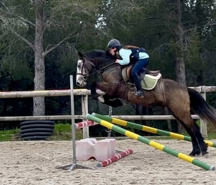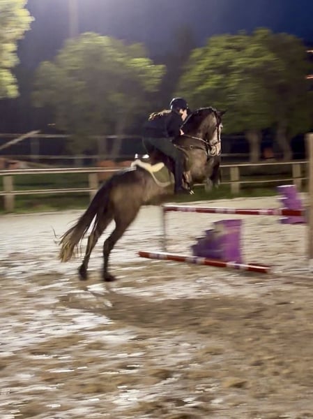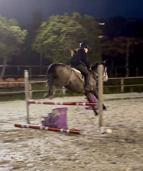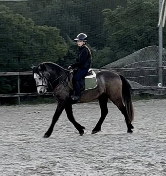 LITTLE GAD DE MARLAU, hongre connemara plein papiers de 5 ans par GAD AR CRANO et TRABANE BELLA, 1.45 m – couleur gris/isabelle Poney de sport très prometteur avec origines CSO (le papa fait pas mal de résultats sur 110) Poney attachant, énergique, sensible et qui reconnait ses humains mais qui convient à un galop 4-5 encadré. Idéal pour quelqu’un qui souhaite créer une vraie relation. Commence à être mis à l’obstacle mais à continuer de travailler. Sur le plat il offre de très belles allures, déplacements latéraux, écoute à la voix. C’est un poney pour un(e) pilote qui souhaite terminer à sa main un poney afin d’évoluer ensemble et qui saura lui faire plaisir en parcours. Nous le vendons à contre cœur car notre fille n’a pas encore le niveau et souhaitons une bonne famille pour lui.