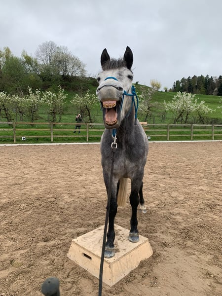 (Wallach, Schimmel, 2020, Connemara, 152cm) Vielseitiger geht nicht - aber überzeug dich selbst! Die Bilder und Videos sprechen für sich! Er ist total menschenbezogen und lieb im Umgang wie auch beim Reiten. Er ist mit sich und der Welt zufrieden, geht neue Lernschritte gelassen und interessiert an und ich denke, dass er für vieles talentiert sein wird. Reiterlich ist er vielseitig grundausgebildet und hat ein sehr angenehmes Temperament. Er kennt das Reiten auf dem Platz und im Gelände, geht in der Gruppe an jeder Position und in allen Gangarten. Alleine ist er dem alter ensprechend in manchen Situationen noch etwas unsicher, aber er reagiert nie kopflos. Sein stabiles, korrektes Exterieur lässt die Ausbildung geradlinig und einfach zu. Er war nie verletzt oder krank. Bei der Bodenarbeit ist Teddy auch an allem interessiert und er kennt auch die Grundlagen in Equikinetik, Longieren am Kappzaum. Wir suchen eine Person oder Familie, die Teddy liebt, mit ihm viel Zeit verbringen will und ihn weiter fördern kann. Ich sehe Teddy mit dem ambitionierten Freizeitreiter erfolgreich in vielen Disziplinen, aber auch für die reine Freizeitreiterei. Ein guter Lebensplatz mit viel freiem Auslauf liegt uns am Herzen! Er lebt hier im Offenstall und ist absolut verträglich und verspielt mit den anderen Pferden. Teddy ist im Connemara National Park auf die Welt gekommen und hat dort die perfekte Kindheit verbracht. 2024 kam Teddy in die Schweiz. Die Besitzer wandern aus, weshalb er nun zum Verkauf steht. Kennenlernen in 8132 Hinteregg
