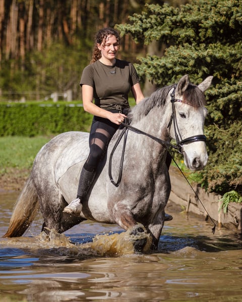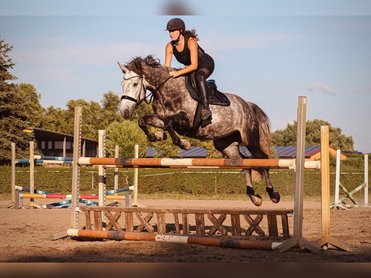 Ich habe mich schweren Herzens dazu entschieden mein Schimmelwallach Tiger zu verkaufen. Da sich die Familiären Umstände verändern haben, habe ich leider einfach kaum noch Zeit für ihn und er langweilt sich sehr… Mit einem Stockmaß von 160 ist Tiger ein XXL Connemara Pony. Er ist 7 Jahre alt und einfach für jeden Spaß zu haben. Er geht sehr gerne ausreiten und kennt Straßen, Autobahnbrücken, Traktoren… Alleine im Gelände fehlt ihm noch etwas die Routine und ist etwas zurückhaltend. Stundenlange Spaziergänge ohne anderes Pferd liebt er und geht auch da überall mit seinem Menschen lang. Tiger hat auch großen Spaß am Springen und hat einen angenehmen Zug zum Sprung. Auch hier Fehlt ihm aktuell aber leider die Routine und die Kraft da ich ja leider nur so unregelmäßig in den Stall komme… Tiger lässt sich angenehm von jedem reiten. Wenn der Reiter unsicher wird, wird auch er ganz vorsichtig und langsam. Unarten wie bocken, losrennen und steigen hat er nicht. Tiger liebt auch die Bodenarbeit und Freiarbeit und kann auch einige Tricks. Auf Grund seiner freundlichen und geduldigen Art kann ich ihn mir auch gut als Kinderpony für den Turniersport vorstellen. Er ist geimpft, regelmäßig entwurmt und ist lieb und unkompliziert beim TA, Schmied und Verladen.