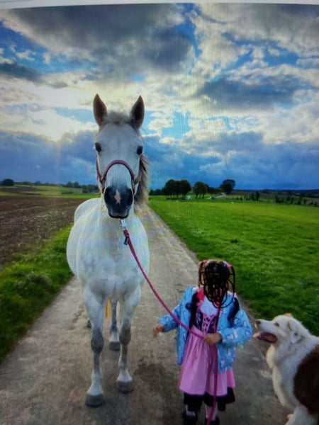 Von Irland gekommen als 3 Jährige und seither rein Freizeit von Erwachsener/ Rentnerin und Jugendlicher geritten. Sehr anhänglich und Sicherheigsbedürftig. Hat Freude an Freiheitsdressur.Schmuse und Prustebacke. Pferdeerfahrung ist Voraussetzung, ebenso gutes Zuhause mit viel Pferdeliebe..