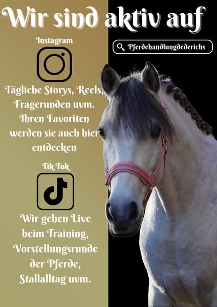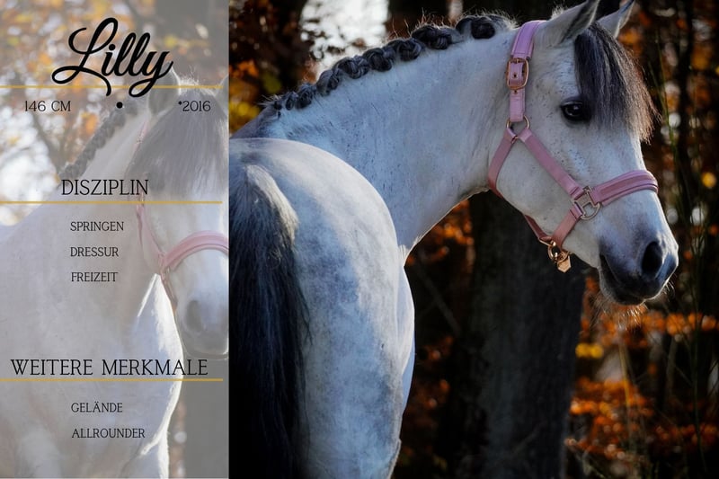 On behalf of the client: Lilly is a 9.5-year-old pony mare, approximately 1.46 meters tall. *Lilly* is a stunning, super cool mare. She has competed in show jumping with children and has accumulated many ribbons. Lilly is very steady-minded and goes out alone or in a group in the terrain; neither deer jumping in front of her, vehicles, nor unfamiliar surroundings bother her. She is also trained to be ridden with a halter and to jump, and she enjoys every kind of fun. !!! BE SURE TO WATCH HER VIDEOS !!! A great beginner’s pony for show jumping competitions as well. She is not hot or sensitive to aids. Lilly comes with a large clinical pre-purchase exam and X-rays. Don’t wait – such a dream pony is rarely found. Horse trading Dederichs – Your partner for horse buying Contact & Availability: Please inquire exclusively by phone at 0173/9792139 Monday – Friday: 9:00 AM – 6:00 PM Saturday: 9:00 AM – 3:00 PM Sunday: Closed Follow us on social media! Experience our daily work with the sale horses on Instagram, TikTok & Facebook at Pferdehandlung Dederichs Discount: Receive 5%–10% off if you take your new dream horse immediately. Trial riding & demonstration: • Trial ride: €40 per horse (up to 2 riders) • Holidays: Trial ride €50 • Demonstration by our grooms: €30 per horse (pre-riding, ground work, etc.) Pre-purchase examination & transport: • Many of our horses already have a pre-purchase exam (AKU) • You are welcome to bring your own veterinarian • We can arrange an examination for you • We also gladly assist with transport to your new home Additional horses for sale: We have more horses for sale in our stable that are not yet listed online. If your dream horse is not yet among them, do not hesitate to contact us. Important notes: • Estimated height measurements are approximate and not precisely measured • All descriptions are subjective assessments by the seller and do not constitute guaranteed properties