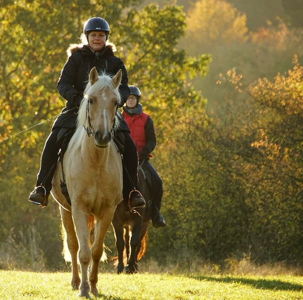 Hermosa y cariñosa y con mucha disposición, esta yegua busca una amazona (o jinete) segura que le brinde confianza y le ofrezca una vida variada. Penny tiene 9 años y fue criada en la estación de descanso de Odenwald. Por ello, su linaje es excepcional: su padre es un mezcla de Trakehner y Pinto, y su madre es una Connemara-Haflinger. Con una altura de aproximadamente 1,55 m, también es adecuada para jinetes de mayor tamaño. Penny es muy sociable, alerta y ágil. Le gusta moverse y, en ocasiones, puede estar un poco nerviosa, pero presenta trotes suaves y bien regulables. La vemos en disciplinas como TREC, Equitación de Trabajo, paseos de larga distancia y, sobre todo, para excelentes excursiones por campo. En doma, sin duda puede progresar, aunque no disfruta mucho del trabajo en la pista. Debido a su temperamento, NO es una yegua adecuada para niños o principiantes. Sin embargo, le encanta que la acaricien manos infantiles. Penny ha pasado toda su vida en un paddock y así quiere seguir. También puede caminar sin herrar sobre caminos asfaltados. Lamentablemente, en los últimos meses, debido a poca actividad ecuestre, ha engordado bastante. Sin embargo, no muestra signos de EMS, ya que come heno a libre disposición y pasta en verano en pastos abundantes. Es posible realizar una prueba de manejo en campo. Venta privada, por lo que no se aceptan devoluciones ni garantías. La creadora del anuncio es mediadora, no la vendedora del caballo, y no recibe ninguna remuneración.
