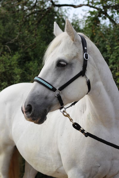 Ramolin Robin aka Baileys est une magnifique jument Connemara pure race, puissante, mesurant 1,52m et dotée d'un physique solide. La jument vit en écurie ouverte dans un troupeau mixte, elle est en bonne santé mais a un régime alimentaire léger. Elle marche pieds nus. En extérieur, elle est montée avec des chaussures à sabots et il est recommandé de la ferrer en cas d'utilisation intensive du terrain. En outre, Baileys est également très bien dressée au sol, elle maîtrise de nombreux éléments de horsemanship, peut être mise en longe, aime se promener et la gymnastique en carrière avec des épaules en dedans et des traverses ne lui est pas étrangère. Nous l'utilisons également en équithérapie avec des personnes particulières, ce qu'elle fait avec dévouement, en douceur et de manière fiable. En raison de son niveau de formation et de son caractère affirmé, nous ne la confions pas à des débutants. Nous souhaitons un foyer stimulant, où elle pourra beaucoup sortir et où elle sera travaillée avec compétence. Nous la vendons uniquement en raison d'un manque d'activité, car nous avons de nouveaux chevaux d'école en service.