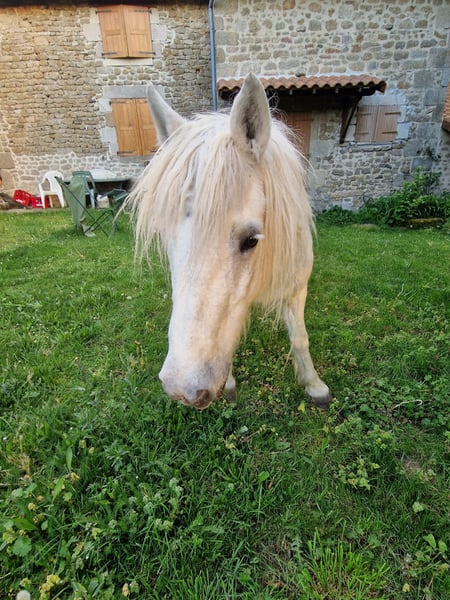 Je donne ma jument a contre coeur suite a des ennuis de santé et la vente de ma maison et ses terrains je ne peux plus m'occuper delle je souhaite donc qu'elle trouve une famille qui prendrait soins d'elle Cest une jument tres gentille qui a été en centre équestre pdt 17 ans je lai depuis 10 ans je ne la monte plus depuis 5 ans mais elle est ok l'icole et filet aucun problème avec le maréchal ferrant tres docile
