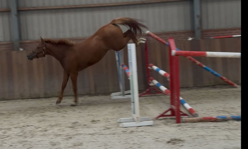 Schöne dreijährige D-Pony-Stute. Diese Stute kann sowohl sehr gut bewegen als auch sehr gut springen. Sie wurde kürzlich von uns aus Litauen importiert. Das Pony ist korrekt und ehrlich. Sie ist gut halfterführig. Außerdem ist sie noch unberitten. Eine nette Pony, um mit ihr zu arbeiten. Sie verfügt über Allroundmöglichkeiten. Ein Video kann per WhatsApp angefordert werden. Sehr schöne junge 3-jährige D-Ponystute. Sie hat derzeit eine Größe von 1,47 m. Das Pony verfügt über Allroundqualitäten. Sie hat ein kräftiges Hinterbein mit guter Biegung. Sie springt leicht in den Galopp und hat eine gute Balance. Auch ihr erstes Freispringen verlief vielversprechend. Sie hat schnelle Reflexe und springt mit hervorragender Technik. Bei Interesse bitte eine Nachricht schicken. Ein Video ist vorhanden.