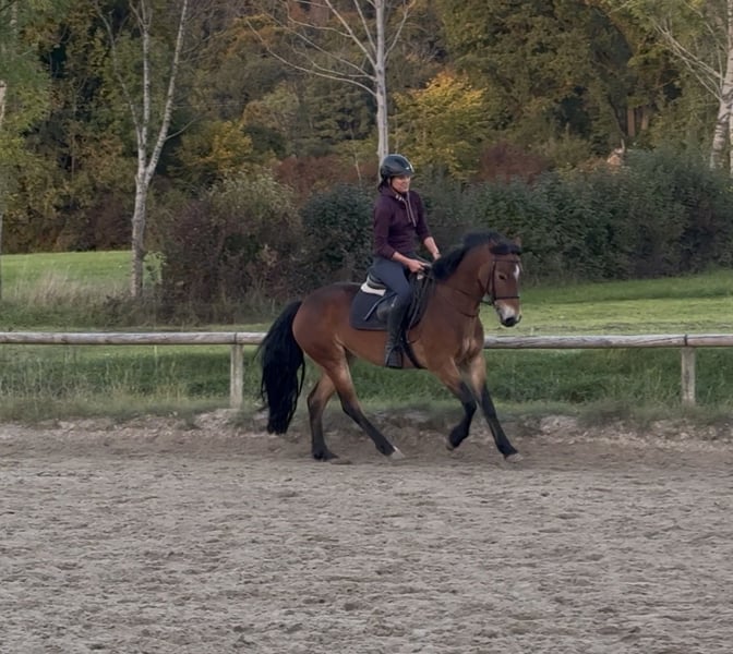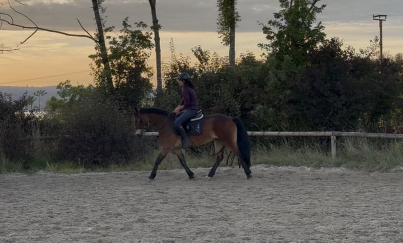 Marie ist 4 Jahre alt und deckt mit einer Größe von ca. 1.45 m auch größere Reiter sehr gut ab. Aufgrund ihres Alters steckt sie noch mitten in der Ausbildung. Bei uns läuft sie auf dem Reitplatz und der Springwiese Schritt, Trab und Galopp unterm Reiter. Im Gelände ist sie unerschrocken. Sie steht barhuf und kennt Box und Offenstall. Wir wünschen uns, für sie ein neues zu Hause in dem sie weiter Ausgebildet wird.