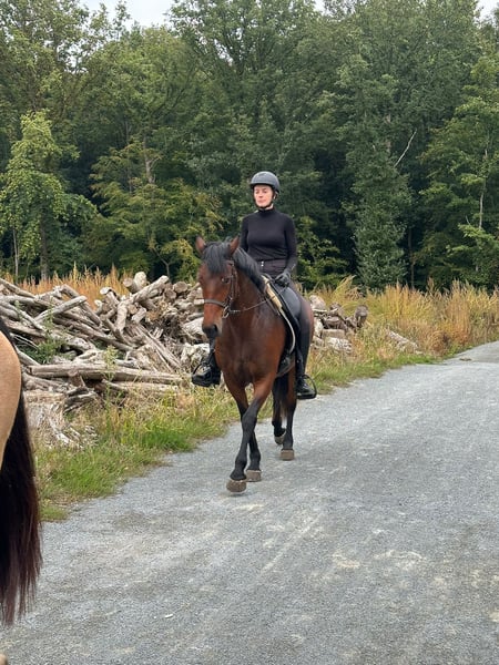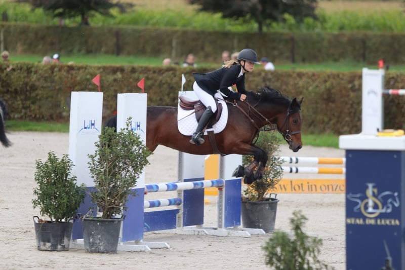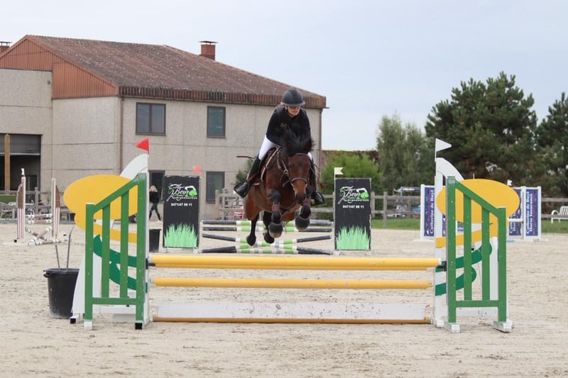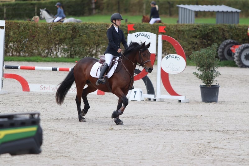 Hilltop Una est une jument Connemara de 5 ans, mesurant 1,46 m. Elle est solide et robuste, ce qui en fait une monture idéale non seulement pour les jeunes cavaliers, mais aussi parfaitement adaptée aux adultes. 🐴 Caractère et comportement Una possède un caractère en or : très douce, affectueuse et toujours partante pour de nouvelles aventures. Elle aime partir en déplacement, se montre sage en forêt et peut être montée sans problème par des cavaliers plus jeunes ou moins expérimentés. 🏆 Sport et polyvalence Elle évolue actuellement avec aisance sur des parcours de 80 cm en compétition et possède certainement le potentiel pour sauter plus haut. Elle est polyvalente : idéale pour la randonnée, la compétition ou comme ponette familiale agréable. 📜 Élevage et origine • Inscrite au stud-book Connemara (Classe 1, N/N) • Origine : père Maam Hero, connu pour ses descendants talentueux en saut d’obstacles, avec un mouvement correct et un caractère fantastique • Une véritable perle à voir, et génétiquement très bien élevée. ✅ Santé Le 19/09/2025, Hilltop Una a été entièrement certifiée cliniquement et radiologiquement sans aucune remarque. 🚛 Pratique • Se transporte très facilement • S’entend parfaitement avec d’autres poneys au pré Plus d’informations ? +32 475 68 22 43 Pour des vidéos, n’hésitez pas à consulter notre site internet