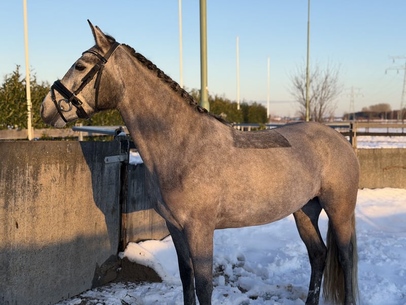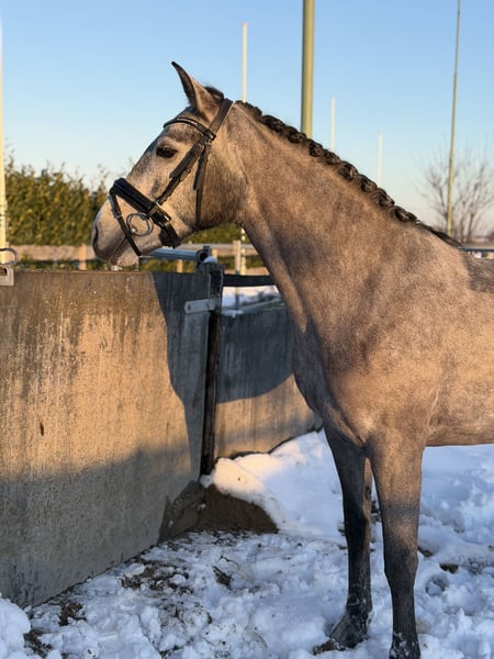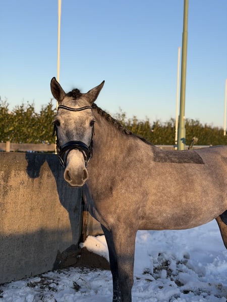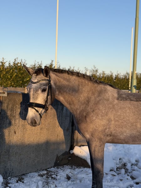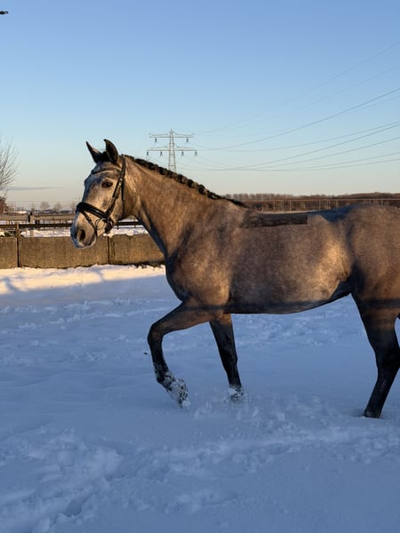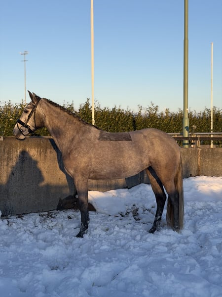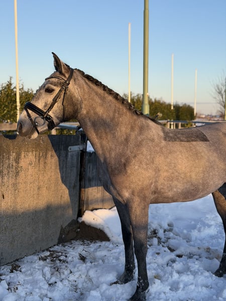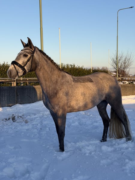 Clonneeagh Lady Grey, genannt Lady, ist eine schöne Connemara-Stute, geboren am 5. Mai 2021. Mit einer Stockmaß von 1,48 m und ihrer ansprechenden Schimmelfarbe ist sie ein echter Blickfang. Lady ist derzeit auf B-Niveau ausgebildet und zeigt sich als freundliches und arbeitswilliges Pony, das vor allem für den Dressursport geeignet ist. Sie verfügt über eine gute Vorwärtsentwicklung und denkt stets mit, was sie zu einem angenehmen Partner macht, um sie weiter auszubilden. Möglicherweise besteht auch Eignung für den Springsport, allerdings wurde hier aufgrund anderer Ambitionen noch nicht mit gearbeitet. Im Umgang ist Lady ein äußerst brave und unkomplizierte Pony. Sie läuft brav mit, kann zusammen mit einem anderen Pony mitgenommen werden und ist sehr sozial im Umgang mit anderen Pferden. Derzeit steht sie täglich mit zwei weiteren Ponys auf der Weide und zeigt sich dabei problemlos. Lady ist beim Tierarzt und Hufschmied brav und kennt keine Mängel. Sie wurde kürzlich klinisch untersucht und ist gesund; eine erneute Untersuchung ist möglich, die Kosten trägt der Käufer. Aufgrund ihres zuverlässigen Charakters eignet sich Lady als Pony für ein Kind mit etwas Reiterfahrung. Sie ist ehrlich und zeigt keine unerwarteten Verhaltensweisen, allerdings ist es wegen ihrer aktiven und vorwärts gerichteten Art wichtig, dass der Reiter über ausreichend Selbstvertrauen verfügt und fest im Sattel steht. 📍 Preis: 15.000 € 📍 Rasse: Connemara 📍 Geschlecht: Stute Eine ehrliche, brave und sportliche Pony mit angenehmer Einstellung, die bereit ist, gemeinsam mit ihrem Reiter in der Sportkarriere weiter zu wachsen.