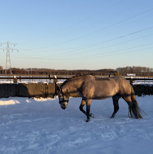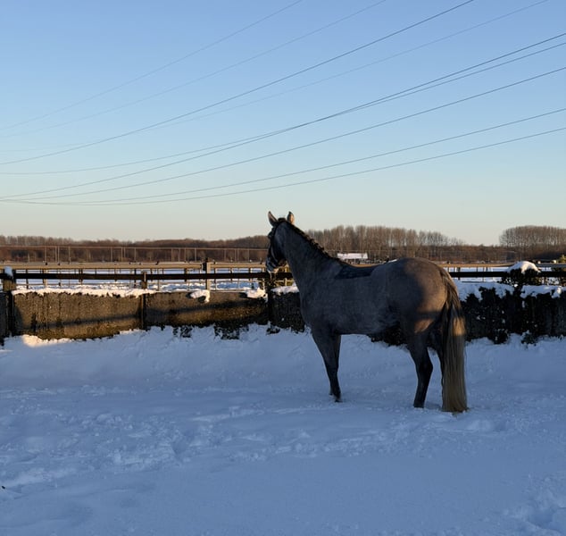 Clonneeagh Lady Grey, roepnaam Lady, is een mooie Connemara merrie, geboren op 5 mei 2021. Met haar stokmaat van 1.47,8 m en haar aansprekende schimmelkleur is zij een echte verschijning. Lady is momenteel uitgebracht op B-niveau en toont zich een fijne en werkwillige pony, met name geschikt voor de dressuursport. Zij beschikt over een goede voorwaartse instelling en denkt altijd mee naar voren, wat haar een prettige pony maakt om verder op te leiden. Mogelijk ligt er ook aanleg voor de springsport, maar hier is wegens andere ambities nog niet mee gewerkt. In de omgang is Lady een uitermate brave en makkelijke pony. Ze loopt keurig met je mee, kan samen met een andere pony worden meegenomen en is zeer sociaal naar andere paarden. Ze staat momenteel dagelijks samen met twee andere pony’s in de paddock en is hierin probleemloos. Lady is braaf bij de dierenarts en hoefsmid en kent geen gebreken. Zij is recent klinisch goedgekeurd; herkeuren is toegestaan, kosten koper. Door haar betrouwbare karakter is Lady geschikt als pony voor een kind met enige rij-ervaring. Ze is eerlijk en doet niets onverwachts, maar omdat zij een actieve en voorwaartse pony is, is het belangrijk dat de ruiter voldoende zelfvertrouwen heeft en stevig in zijn of haar schoenen staat. 📍 Prijs: €15.000 📍 Ras: Connemara 📍 Geslacht: Merrie Een eerlijke, brave en sportieve pony met een fijne instelling, die klaar is om samen met haar ruiter verder te groeien in de sport.