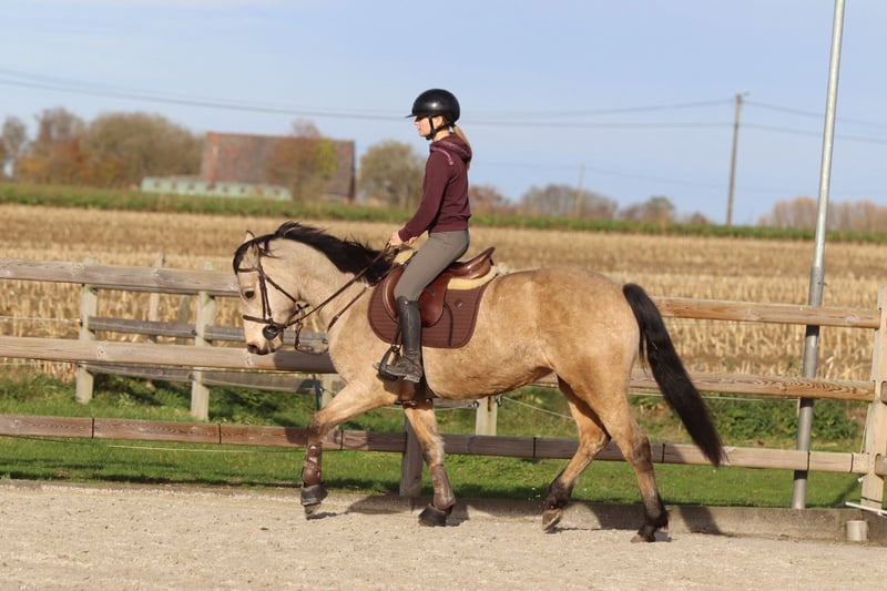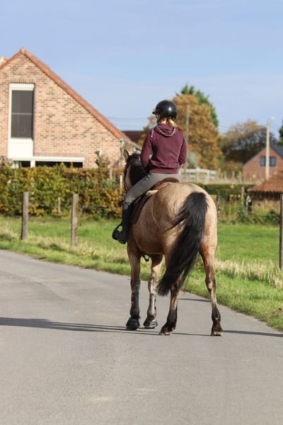 Bohola Beauty (“Bo”) Bo is een 5-jarige valk Connemara-merrie met een stokmaat van 1m53. Ze heeft een aantrekkelijk voorkomen, een zacht karakter en een nieuwsgierige ingesteldheid. Bo springt momenteel een parcourtje van 70 cm en toont duidelijk potentieel voor hoger werk. In de omgang is ze braaf, sociaal en maakt ze snel vriendjes op de weide. Ze geniet ook van wandelen buiten en blijft steeds meewerkend en attent. Bo stamt af van de bekende Connemara-hengst Bohola Mirah, een hengst met een sterke afstamming uit de lijn van Westside Mirah. Bohola Mirah staat bekend om zijn correcte bouw, goede beweging en sterke rasuitdrukking, eigenschappen die ook bij zijn nakomelingen vaak terug te zien zijn. Bo heeft een Class 1-afstamming. Ze is ook N/N getest voor hoofwall, wat extra gemoedsrust biedt over haar gezondheid en erfelijkheid. 📞 Meer info: +32 475 68 22 43 🎥 Voor video’s kan je terecht op onze website.