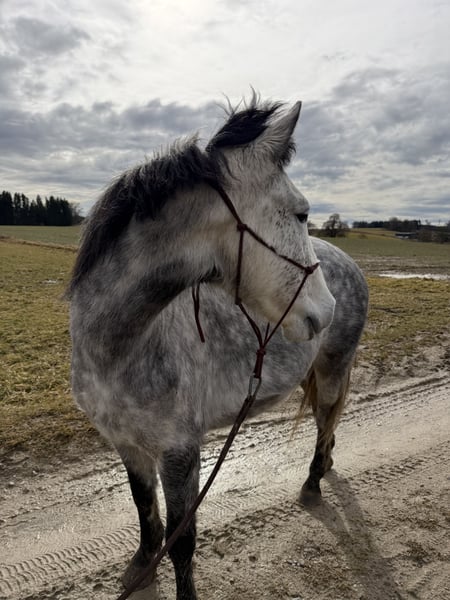 Satu ist eine Connemara-Mix Stute aus dem irischen Tierschutz. Sie ist 1,38m groß und ca. 5 Jahre alt. Sie ist seit September in Deutschland und kennt Bodenarbeit, Longieren und hatte schon mehrfach einen Sattel auf dem Rücken. Sie geht alleine und in der Gruppe spazieren. Aufgrund ihrer Herkunft ist sie anfangs skeptisch gegenüber fremden Menschen und reagiert eher schreckhaft auf neue Dinge. Sie ist kein Anfänger-/ oder Kinderpony. Sobald sie jemanden kennt ist sie jedoch sehr verschmust und neugierig. Sie wird zunehmend selbstsicherer im Umgang. Tierarzt und Hufschmied kennt sie, dabei ist sie sehr brav. Platz vor Preis.
