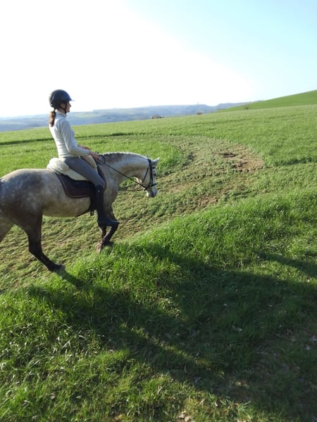 6-jährige Stute „April“, unkompliziert im täglichen Umgang (auch von Kindern handelbar) und stets neugierig sowie aufmerksam bei der Arbeit. Sie wurde im Winter 24/25 schonend angeritten und zeigt sich seitdem brav in allen Grundgangarten – sowohl auf dem Platz, in der Halle als auch im Gelände. April ist fein am Schenkel, sensibel und immer motiviert bei der Sache. Aktuell befindet sie sich auf etwa E-Niveau, wobei ihr der Linksgalopp noch etwas schwerfällt und weiter gefördert werden sollte. Sie kennt die Arbeit an der Longe, Doppellonge, Bodenarbeit sowie Freispringen und zeigt sich dabei durchweg lauffreudig und engagiert. Ein Pony, das gefallen möchte und mit der richtigen Bezugsperson weiter wachsen wird. Im Umgang ist sie freundlich, Fremden gegenüber zunächst etwas zurückhaltend. Hat man jedoch ihr Vertrauen gewonnen, geht sie mit ihrem Menschen durch dick und dünn. Regelmäßig geimpft (Tetanus, Influenza) sowie osteopathisch und zahnärztlich betreut. HWSD n/n. Sie lebt aktuell in einer kleinen Stutenherde, ist sozial verträglich und rangmäßig im Mittelfeld. Kennt sowohl Boxen- als auch Offenstallhaltung sowie Weidegang. Halle, Platz und Gelände sind ihr bestens vertraut. Ursprünglich für den Einsatz in der Reitschule vorgesehen, zeigt sich jedoch, dass sie mit häufig wechselnden Reitern nicht glücklich wird. Gesucht wird daher ein einfühlsamer Freizeitreiter, der Freude an einem motivierten, sensiblen Pony hat und ihr die nötige Konstanz geben kann.
