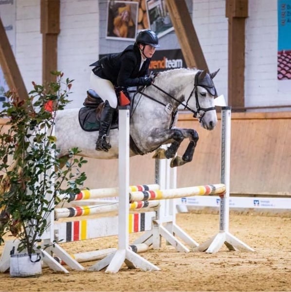 De ponytijd loopt ten einde en daarom zoeken wij een nieuw thuis voor onze 7-jarige Connemara merrie Killina Star. We hebben de merrie als 3-jarige gekocht bij Hannah en Michaela van de Connemaraponys Neupärtl, waar we haar zelf hebben opgeleid. Killina Star, bij ons Schnuff genoemd, is 1,46 m groot, regelmatig gevaccineerd en ontwormd, en wordt uiteraard regelmatig door de hoefsmid verzorgd. Ze is voor- beslagen en achter onbeschopt. Schnuff is een betrouwbare partner in het terrein, presteert in de dressuur op L-niveau, heeft A- en A*- springen geplaatst en heeft op wedstrijden tot A** springen gelopen. Ze kent hindernissen in het terrein en springt moedig over alles. Met een 11-jarig meisje heeft ze dit seizoen WBO-wedstrijden, springruitertoernooien en E-springen gewonnen. Killina Star is geen lampenuitreter, maar een zeer goed opgeleid 7-jarig pony dat altijd veel plezier geeft. De merrie is in omgang altijd braaf, maar kan op sommige dagen wat sturiger zijn. Ze kan zelfstandig geladen worden, onze hoefsmid doet dat ook, als het bij ons eens niet uitkomt. Alles wat de dagelijkse omgang betreft, zoals scheren, is ze eenvoudig en prettig in de omgang. Of ze nu thuis is of op buitenritten, ze is altijd betrouwbaar! We zoeken voor het pony een sportief ambitieuze nieuwe eigenaar, omdat de merrie graag iets doet. Alleen in het terrein rijden zou haar op den duur waarschijnlijk te saai worden. Ook een moeder-dochter combinatie is heel goed mogelijk! De merrie is braaf en makkelijk, maar geen puur kinder- of beginnerspony. Met wat begeleiding zien wij daar geen problemen. Ze laat zich goed longeer- en rijden en loopt braaf in alle drie gangen aan de longe, en reageert op elk commando. Ook zonder zadel rijden of springen met halsring vindt ze geweldig. Killina Star houdt van een afwisselend programma. Als Killina Star jouw interesse heeft gewekt, neem dan gerust contact op voor meer informatie. Een uitgebreide ECG inclusief 15 röntgenfoto’s van benen en rug ligt zonder afwijkingen voor, deze is op 20-11 uitgevoerd. De röntgenfoto’s en het rapport kunnen bij interesse worden toegestuurd.