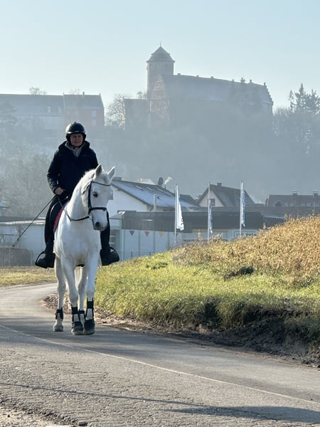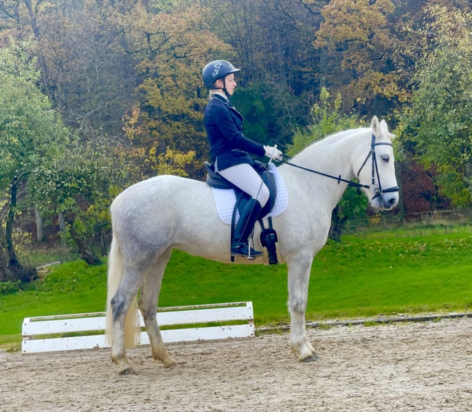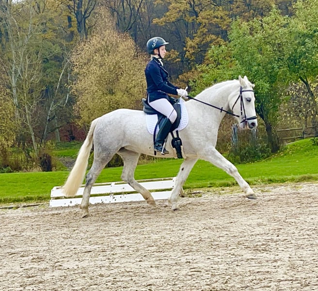 Cooperbeech Dutchess Cooperbeech Dutchess wurde am 28. Februar 2018 auf dem berühmten und renommierten Cooperbeech Connemara Gestüt von Tomas und Fiona Grimes im schönen Irland geboren. Dutchess, wie wir diese elegante Schimmelstute mit einer Endgröße von 1,47 m nennen, kam im Alter von zwei Jahren zu uns auf das Gestüt Lisbergs. Sie ist eine Traumstute, die Menschen über alles liebt – mehr als ihr eigenes Kind. Im Alter von vier Jahren erlitt Dutchess einen Backenzahnsplit, der in der Tierklinik "Stephansmühle" von innen entfernt wurde. Die Nachbehandlungen und Spülungen wurden von der Tierklinik Bamberg übernommen. Dies ist inzwischen viele Jahre her und hat keine Folgen. Wir lassen alle unsere Pferde jährlich zahnärztlich untersuchen und behandeln. Dutchess absolvierte am 16.11.2022 ihre Leistungsprüfung in Ansbach erfolgreich mit der Note 7,18. Bis zwei Tage vor der Prüfung wurde sie aufgrund ihrer Zahn-OP gebisslos geritten und fühlte sich noch etwas unwohl mit der doppelt gebrochenen Ringtrense. Heute ist das kein Problem mehr, und Dutchess läuft sowohl mit als auch ohne Gebiss auf gutem A-Dressur-Niveau. Dutchess ist eingetragene Zuchtstute und hatte 2024 ein wunderschönes, gesundes Hengstfohlen von unserem Lettermuckoo Hazys. Der kleine Lisbergs Hercules wurde im Oktober abgesetzt. Da seine Mutter Menschen mehr liebt als ihr eigenes Kind, haben wir uns entschlossen, Dutchess als Connemara-Reitpony zu verkaufen. Leider hat Hercules kurz vor dem Absetzen in einer Nacht allen Zuchtstuten im Laufstall die Schweife abgebissen. Diese wachsen bei jeder Stute nach, was auch bei Dutchess deutlich sichtbar ist. Dutchess ist eine Tochter des bekannten GLENCARRIG KNIGHT, einem bedeutenden Stempelhengst der irischen Connemara-Zucht. Ihre Mutter COPPERBEECH STAR stammt ab von CLONBERNE BOY, einem Sohn von VILLAGE BOY, sowie mütterlicherseits von CURRACHMORE CASHEL und GLENCARRIG PRINCE – nur einige der bekannten Vorfahren in ihrem Pedigree. Beide Eltern von Dutchess sind Class 1 und HWSD N/N, eingetragen im Hauptstammbuch des Verbandes der Pony- und Kleinpferdezüchter Hannover. Dutchess hat kein Sommerekzem und keine Unarten wie Weben oder Koppen. Sie reist sehr souverän im Pferdetransporter oder LKW. Sie ist ein ideales Pony für Leute, die später ein größeres, kompakteres Pony suchen. Im Umgang ist Dutchess eine echte irische Lady: stets freundlich, zeigt ein gutes Sozialverhalten in der Gruppe und vermeidet Streitigkeiten, lässt sich aber nicht „mobben“. Dutchess verfügt über schöne, raumgreifende Grundgangarten und einen sehr feinen Charakter, sowohl in der Offenstallgruppe als auch im Panel-Boxenstall. Sie ist regelmäßig gegen EHV 1, 4, Tetanus und Influenza geimpft und entwurmt. Aufgrund ihrer Größe eignet sie sich für den Ponysport, Ponyspiele und therapeutisches Reiten. Durch ihre ruhige Art ist sie auch als Reitpferd für größere Reiter geeignet, da sie sehr stabil gebaut ist. Die Pause und das spätere Anreiten haben ihr mental und körperlich sehr gut getan. Da Connemara-Ponys erst mit 7 bis 8 Jahren vollständig ausgewachsen und entwickelt sind, ist eine altersgerechte Reiterei ein Garant für lange Freude an diesem Pony. Gut gepflegte Connemaras sind langlebig, 30 Jahre sind bei der Rasse keine Seltenheit. Dutchess ist gut longiert, artig und altersgerecht geritten. Wir sehen sie eher als Dressurpony, Familienpony, Therapiepferd oder Show-Pony, da sie sich sehr gut präsentieren kann. Dutchess ist barhuf und liebt es, sich in der Natur zu bewegen. Beim Auf- und Absitzen ist sie sehr entspannt. Aufgrund ihres freundlichen Charakters und ihrer Verträglichkeit gegenüber anderen Pferden und Hunden wäre sie auch ein sicheres Geländepferd für einen nicht so starken Reiter, auch mit Hund oder für die Reitjagd. Selbstverständlich geht Dutchess auch alleine ins Gelände, kann in eine Gruppe integriert werden und wieder herausgeritten werden. Sie ist straßen-, gelände- und verkehrssicher, auch für schwächere Reiter. Dutchess geht brav in Schritt, Trab und Galopp. Im Gelände ist sie traumhaft lange galoppierbar. In unserer kleinen Halle und auf dem Reitplatz fällt es ihr noch manchmal schwer, den Galopp lange zu halten, aber im Gelände ist sie dort unbegrenzt zuverlässig. Wenn Ihnen Cooperbeech Dutchess gefällt, wenden Sie sich bitte direkt an die in der Anzeige angegebenen Nummern. Bei einer E-Mail geben Sie bitte Ihren Namen und Ihre Mobilnummer an. Gerne können Sie uns auch direkt über WhatsApp unter 00491713415878 kontaktieren. In unserem schönen Ort funktioniert das mobile Telefonieren leider nur eingeschränkt. Auf dem letzten Bild ist Dutchess’ Vater, Glencarrig Knight, zu sehen. Das vollständige Pedigree finden Sie in den Dokumenten, da ehorses häufig Teile der Abstammung nicht vollständig anzeigt. Für jeden Besuch auf unserem Gestüt erheben wir eine Kennenlern-Pauschale von 50 €, an Sonn- und Feiertagen sind 70 € bei Ankunft in bar zu entrichten.