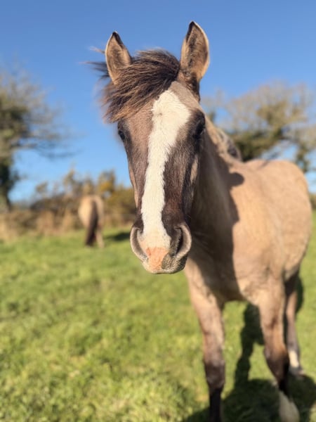 Découvrez cet élégant étalon Criollo, un jeune cheval prometteur né en 2025. Sa robe grullo lui confère un look particulièrement sophistiqué, avec un pelage gris foncé aux reflets argentés. Mesurant environ 145 cm à taille adulte, il possède une taille idéale pour le loisir et la promenade, tout en conservant une silhouette harmonieuse et équilibrée. Ce Criollo, encore tout jeune, a déjà montré une grande curiosité et une attitude calme, ce qui en fait un compagnon idéal pour les amateurs de loisirs équestres. Sa conformation solide et sa morphologie typique de la race lui confèrent une excellente endurance et une grande adaptabilité à différentes activités de détente ou de promenade. Son tempérament est doux et équilibré, parfaitement adapté aux cavaliers cherchant un cheval fiable et facile à monter. Son jeune âge laisse entrevoir un potentiel de développement important, que ce soit pour des activités de loisir ou pour une future carrière dans le dressage ou l’élevage. N'hésitez pas à venir le découvrir pour envisager une belle complicité avec un cheval de qualité, prêt à accompagner ses futurs propriétaires dans de nombreuses aventures équestres. Discover this elegant Criollo stallion, a promising young horse born in 2025. His grullo coat gives him a particularly sophisticated look, with a dark gray coat with silver highlights. Standing approximately 145 cm (145 cm), he is the ideal size for leisure riding and trail riding, while maintaining a harmonious and balanced silhouette. This young Criollo has already shown great curiosity and a calm temperament, making him an ideal companion for equestrian enthusiasts. His solid build and typical breed conformation give him excellent stamina and great adaptability to various recreational activities or trail rides. His temperament is gentle and balanced, perfectly suited to riders looking for a reliable and easy-to-ride horse. His young age suggests significant potential for development, whether for leisure riding or a future career in dressage or breeding. Don't hesitate to come and discover him to consider a beautiful partnership with a quality horse, ready to accompany his future owners in many equestrian adventures.