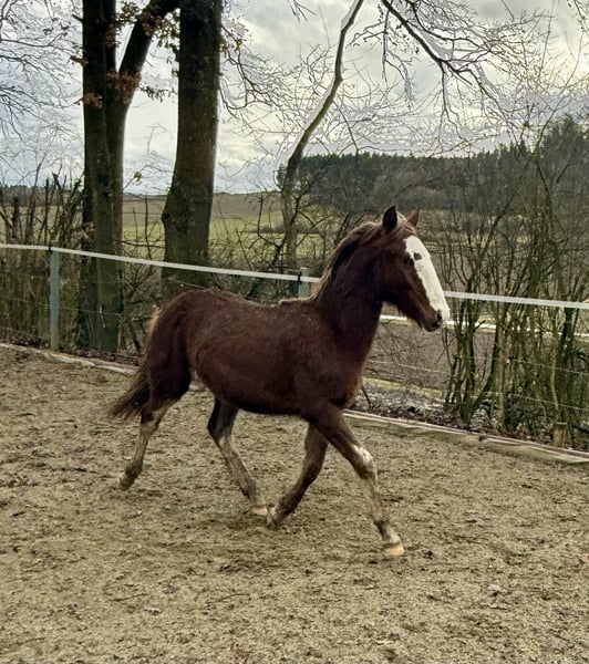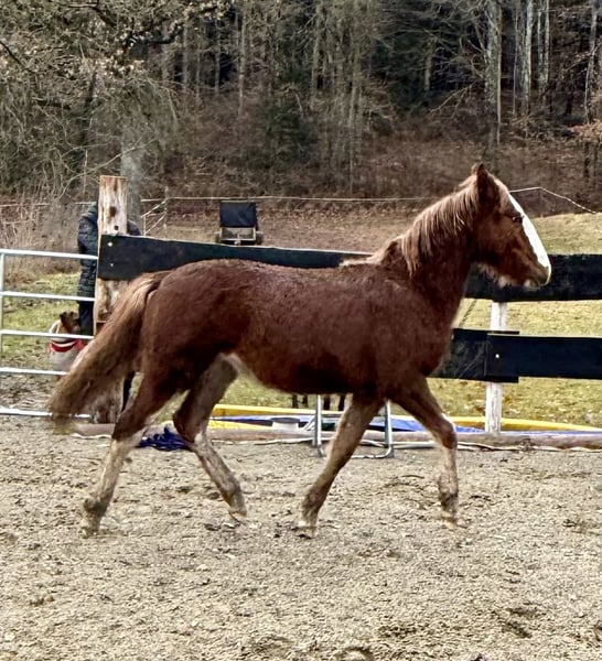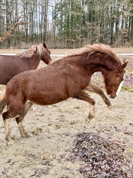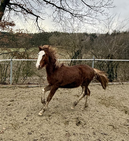 This young colt is looking for a place where he can still be a young horse and be introduced to his life as a riding partner with patience and love. He has been raised in a mixed herd in an open stable environment, with 24/7 hay available. He is relaxed and normally playful in his behavior. Humans are still relatively unimportant to him, unless there’s food involved. He is a premium foal and will surely become a wonderful lifelong partner. Parents are 14.2 hands. Feel free to contact us with any questions. WhatsApp: 01729919663