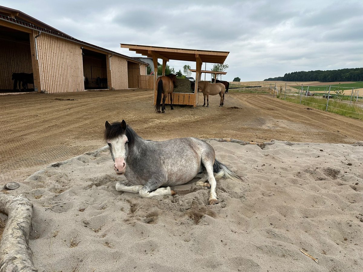 Aufgrund privater Umstände muss ich mich von meinem geliebten, zehnjährigen Criollomixwallach trennen. Shey ist absolut liebenswürdig, menschenbezogen, aufgeschlossen, unerschrocken und neugierig. Er ist westerngeritten, kann von Seitengängen über Außengalopp etc. bereits sehr viel und ist immer mit Freude bei der Arbeit. Genauso kann man mit ihm sehr entspannt ausreiten. Auch Bodenarbeit gehörte bisher immer fest zu seinem Programm. Er hat beidseitig einen Spatbefund, rechts ausgeprägter als links. Da mir aufgrund meiner privaten Situation schon länger die Zeit fehlt, ihn wieder anzutrainieren, ist er seit Längerem nicht geritten worden. Ob er noch einmal voll belastbar sein wird, weiß ich zum jetzigen Zeitpunkt nicht. Aktuell lebt er in einer großen gemischten Offenstallherde, in der er mittig bis niedrig im Rang ist, sich aber mit allen Pferden gut verträgt. Er spielt viel und gerne, was für seinen Spat leider nicht gut ist. Ich werde ihm einfach nicht mehr gerecht und bin auf der Suche nach einem Platz, wo er eine Aufgabe hat und Pferd sein darf. Ein Leben als Hippolini-Lehrpferd kann ich mir für ihn sehr gut vorstellen, da er auch sehr kinderlieb ist und die Aufmerksamkeit genießt. Es gilt absolut Platz vor Preis!