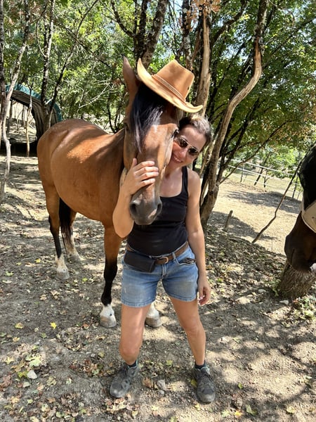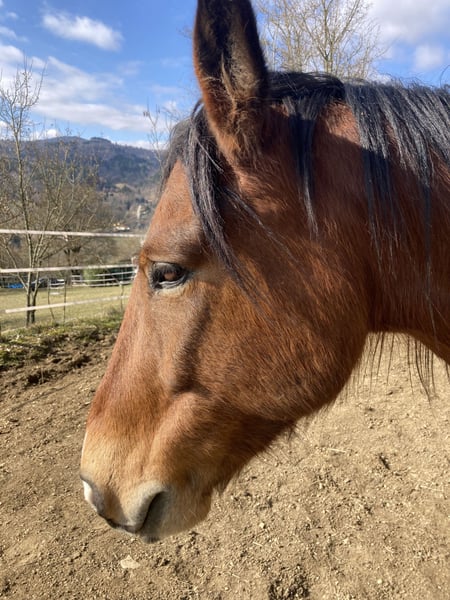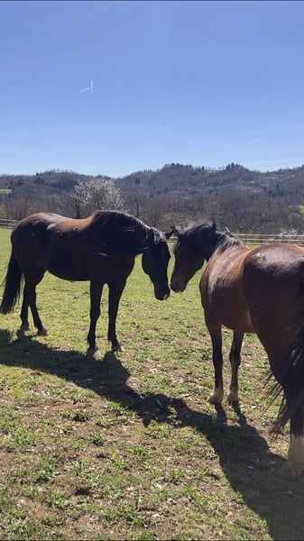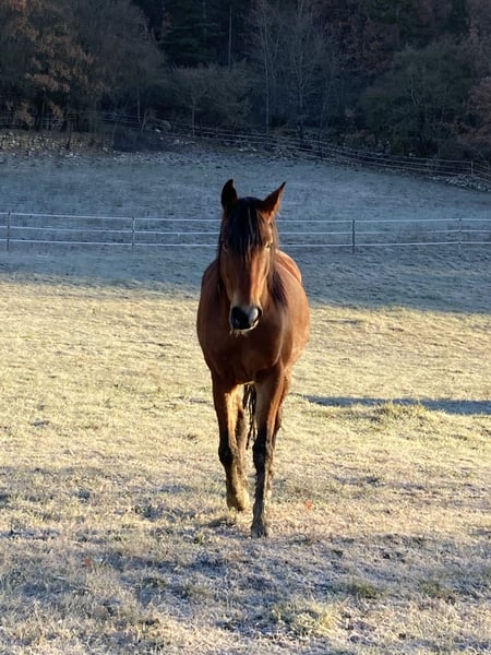9-year-old Argentinean gelding (Mestizo) Location: Italy/Tuscany There is the option to stay in our guesthouse and thoroughly test him on-site. Callisto has plenty of energy and needs to be worked regularly. He is not suitable for beginners. He is familiar with lunging, free work, dual reins, poles, small jumps, and long rides (up to 4 hours). He is always eager, motivated, and even leads the group on rides. He does not know how to ride out alone. Before the farrier visit, he needs to be lunged beforehand; otherwise, he becomes restless and impatient. He communicates very clearly and loves to be challenged and encouraged. For our guest riding program, which often involves riders of varying skill levels, he has too much energy. He has been with us since 2021 and has made tremendous progress.