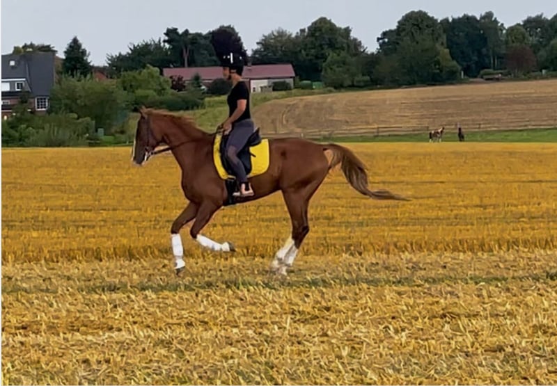 Hübscher Fuchswallach, bald 9 Jahre sucht neues Zuhause. Im Umgang sehr,lieb und gut erzogen. Ist 4-5 Mal wöchentlich geritten und hat schöne weiche Gänge. Er ist gewohnt mit Stuten oder Wallachen, auf die Koppel zu gehen und war bisher immer artig in der Weidegruppe. Er kennt Box wie Offenstall.Aktuell steht er in Box mit Auslauf und geht auf die Weide. Wird ambitioniert Freizeit geritten auf Platz,Reithalle,Gelände.Führanlage kennt er auch. Aufgewachsen Pologestüt Schockemöhle. Ein Mix aus Criollo und Englischen Vollblut. Kein Polo gespielt. Eventuell auch interessant für einen größeren Westernreiter(in) der die Rasse, Criollos mag. Aku kann auf Anfrage und eigene Kosten erstellt werden. Die letzte große Aku war unaufällig. Platz vor Preis
