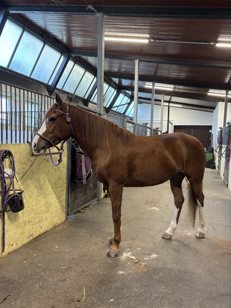 Polocross Pony for sale as a leisure horse. We are looking for a new home for our polo mare Canica as a recreational riding horse. Canica is 12 years old and arrived in Germany from Argentina in 2022. Unfortunately, she isn’t particularly fond of polo – she loves “normal” riding even more. Therefore, we are seeking a new home for her without polo activities! As is typical for her breed, she is very easy to handle and well-behaved under saddle. She is used to being outside 24/7 and has also experienced stall life with regular access to paddock or pasture.