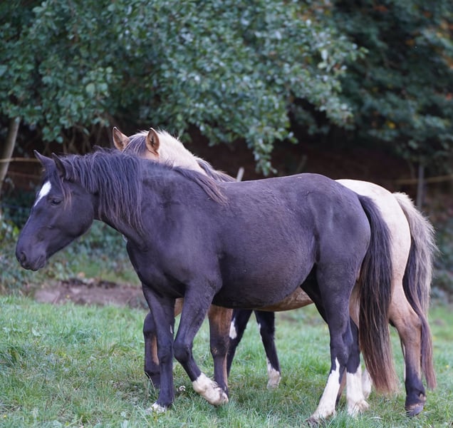 For sale is a stunning Criollo mare, born in 2020. This elegant black mare is characterized by her strong conformation and friendly temperament. She is ideally suited for breeding and offers great potential for ambitious breeders. This year, she foaled a healthy colt by our La Esperanza Palisandro. This little gentleman is a dream in black and has a heart of gold. Her first foal was sired by our Surrender and is a beautiful black and white pinto mare, which will later enrich our breeding program. She is currently pregnant by our Surrender! Two horses for the price of one! If you are interested or have any further questions, please feel free to contact me. Viewings are available by appointment.