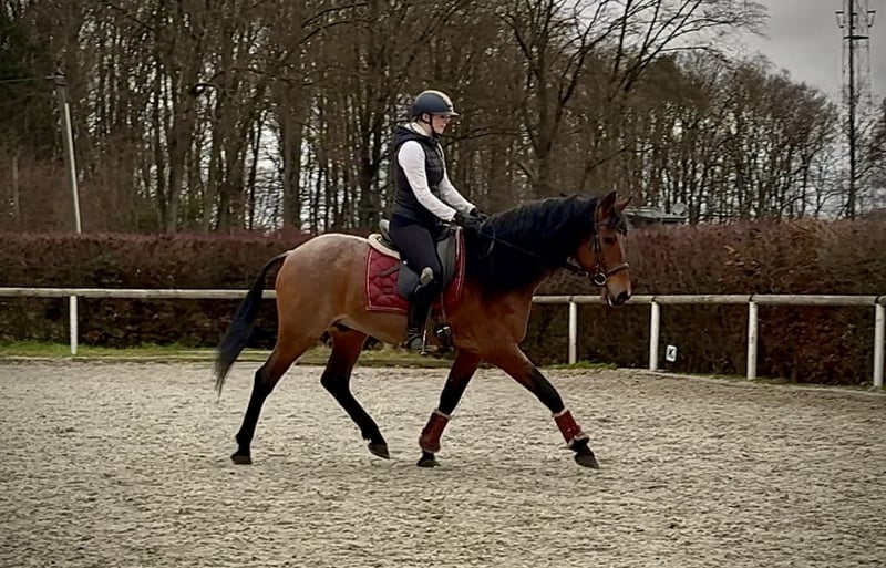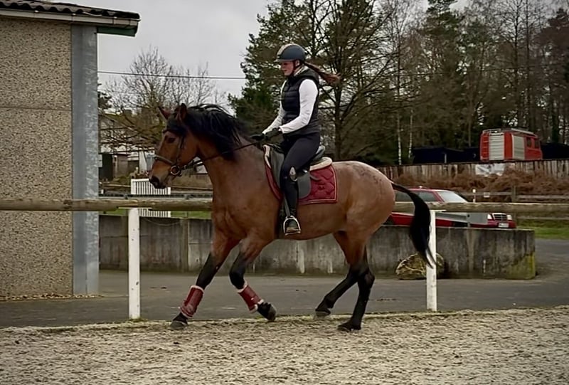 Name: Fandango Breed: Crossbred Gender: Gelding Date of Birth: May 2, 2016 Age: 9 years Height: 15.5 hh Color: Chestnut with flaxen mane and tail Pedigree: Without pedigree documentation Temperament: People-oriented, reliable, patient, curious, intelligent, brave, calm Training/ suitability: Well-ridden, Dressage, Leisure riding, Baroque riding, Working Equitation Trail Experience: Trustworthy, fearless, resilient, suitable for solo and group rides, trail-proven Health: Dewormed, vaccinated, barefoot, eczema-free, teeth checked, osteopathically treated Stabling: Box stall, paddock Special Features: Good fundamental gaits, farrier and loading confident, herd-friendly Please note that the characteristics listed are based on our personal assessment and do not constitute a guarantee. Price: €8,500 (gross price) Have we sparked your interest? To give you a better impression of Fandango, we are happy to send you his riding video. Of course, we are available for a detailed description of the horse, personal consultation, and to answer all your questions by phone. Feel free to contact us anytime via WhatsApp or call us at: +49 151 19487595 Our phone hours are daily from 7:00 AM to 1:30 PM and from 8:00 PM onwards. We look forward to hearing from you! A veterinary clinical or radiological pre-purchase examination can be carried out by your veterinarian of choice. Fandango can be safely and comfortably delivered to his new home. We take care of all necessary preparations and transportation so that your new horse arrives stress-free, well cared for, insured, and in good health. Currently, we offer a carefully selected variety of horses for sale. With us, you are sure to find your dream horse. Visit us also on our website at: www.marvinsroyalhorses.de. Dear customers, we are happy to introduce you to our horses and offer grooming, tacking, lunging, ground work, and trial riding in the riding hall, on the arena, or in the field to get to know your new family member better. This costs €40 for one horse, €30 for each additional horse, and will be refunded upon purchase. Our address: Ferdinand Grube 50 53577 Neustadt-Wied Google Maps: marvinsroyalhorses