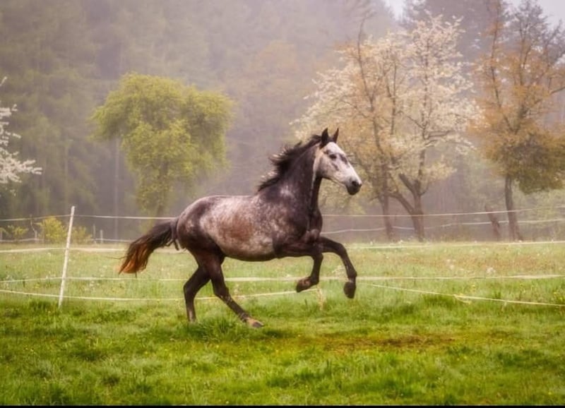 Dream horse for outdoor enthusiasts. Well-behaved 10-year-old Spanish gelding. Are you looking for a loyal partner for relaxed rides in nature? Then this charming Spanish horse might be just right for you if you are an experienced rider. Because his well-being is very important to me, I am seeking a new, loving home for my 10-year-old Spanish gelding. He is an honest horse with a very friendly and human-oriented personality. He loves being kept in a pasture with ponies or lower-ranking horses. He enjoys moving freely outdoors. Absolutely easy to handle, well-mannered, and free of bad habits. He is the ideal horse for riders who love trail riding. He clearly enjoys long hacks and always proves to be reliable. Even small obstacles in the terrain bring him great joy, and he handles them with ease. He also enjoys groundwork exercises very much. Farrier- and loading-trusted: He loads into the trailer without any issues. He is a sweetheart to handle and is just waiting to go through thick and thin with his new owner. Accessories can be purchased additionally. If you're interested or would like to get to know him, I look forward to hearing from you!