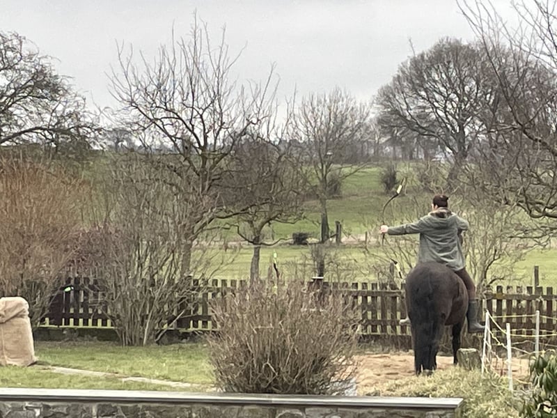 Montenegro (18 Jahre, 1.53m, Cruzado, castaño, grüner Paß) Er ist ein absolutes Freizeitreitertraumpferd. Er macht einfach alles mit und ist dabei immer tiefenentspannt aber nicht langweilig. Spaniertypisch sehr bequem zu sitzen. Bei uns zeigt er sich als geduldiger Lehrer für Anfänger, sehr lieb mit ängstlichen Reitern und voller positiver Energier mit mir (alter Hase seit 50 Jahren im Sattel). Er ist stellt sich auf den jeweiligen Menschen ein und ist immer dabei, wenn es darum geht Neues zu erarbeiten/entdecken. Ob Ausritte, alleine oder in der Gruppe, Schlitten ziehen, Working Equitation, Garrocha, Coolnesstraining, Handarbeit, berittenes Bogenschiessen, Trail/Extremtrail, Lektionen unter dem Sattel. Wir hatten fleißig Unterricht. Er ist sehr vielseitig ausgebildet und ganz fein an den Hilfen. Man hat nur das Gewicht des Zügelleders in der Hand, fein am Bein und Gewicht, Stimmhilfen und Körpersprache. Er wird derzeit einhändig im Bosal oder Kandare gearbeitet und macht richtig Spaß. Er geht auch sehr schön in der Portugiesiscshen Kandare (4-zügelig). Er ist von der ruhigen besonnen Sorte aber keine Schlaftablette. Weder triebig noch eine Rennsemmel. Kann sich sehr gut konzentrieren, verzeiht Fehler. Kennt alles was ein lebendiges Dorfleben zu bieten hat. Kühe, Schafe, Enten Hunde, große Maschinen uvm. auch Boxenhaltung, Offenstall, Heuraufen und -netze, Führanlagen, Reitplätze, Hallen usw. Bleibt selbst bei herannahenden Drohnen cool. Geht über Brücken, Gitterroste und auch schmale Wege. Kennt es im Hänger zu einem Training zu fahren. Sowohl über Nacht als auch für eine Einheit. Meinen Traum im Damensattel zu reiten würde er sicherlich, ohne mit der Wimper zu zucken, mitmachen. Unkompliziert, hat ein riesengroßes Herz, menschenbezogen und ein Genießer. Liebt die Masterson Methode. Ein Schatz auf vier Hufen mit besten Manieren nicht nur unter dem Sattel, sondern auch im täglichen Umgang. Und wenn man Lust auf einen flotten Galopp hat kann man anschließend einfach die Zügel lang lassen und gemütlich dahinschländern. Tierarzt, Zahnarzt, Schmied, Hänger fahren usw. macht er ganz locker. Ich suche schweren Herzens ein passenderes Zuhause für ihn nur aus einem Grund. Nach Jahren als Einstaller halten wir unsere zwei Pferde Zuhause in Eigenregie. In den Ställen bekamen sie zu viel Futter, was sie nicht vertragen. Er bekam EMS. Hier bei uns kann ich nicht die Umgebung schaffen die für ihn funktionieren würde. Er liebt es mit anderen Wallachen zu spielen. Unsere Stute spiel nicht mit ihm. Es fehlen ihm Bewegungsanreize und leider sind unsere Weiden sehr fett. Er ist Checkheft gepflegt und gesund bis auf EMS. Er ist nie krank und verletzt sich nie, hat keine Allergien oder sonstiges. Ist Barhufer mit Hufschuhen. Es gibt natürlich noch viel mehr zu erzählen, daß dann gerne bei ☕️☕️ Montenegro lebt bei Aachen. Gerne darf ein entspanntes Kennenlernen über mehrere Besuche stattfinden ist jedoch kein Muss. Für Monte ist neben einer gesunden Ernährung viel Bewegung wichtig. Er bewegt sich sehr gerne. Weidegang mit Jungs zum Toben, Allwetterreitplatz oder Halle die ein ganzjähriges kontinuierliches Training ermöglichen, eine Führanlage wäre hilfreich. Wir haben diese Möglichkeiten leider nicht. Wer ernsthaftes Interesse hat darf mich gerne alles fragen.