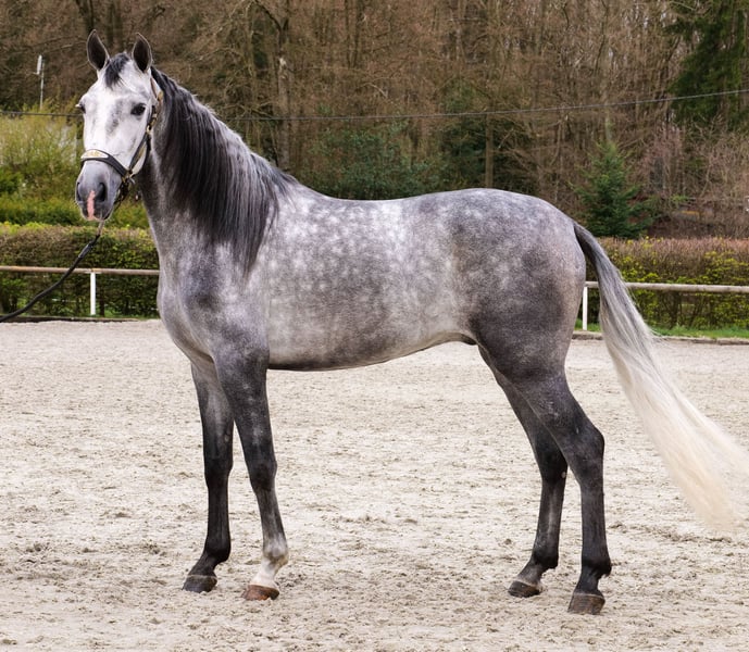 Name: Guajiro Rasse: Cruzado, Kreuzung Geschlecht: Wallach Geburtsdatum: 02.11.2022 Alter: 4 Stockmaß: 1.58m Farbe: Schimmel Abstammung: ohne Abstammungsnachweis Charakter: menschenbezogen, lernwillig, verlässlich, neugierig, intelligent, mutig, gelassen Ausbildung/Eignung: geritten, Dressur, Freizeit, Barock, Working Equitation Geländeerfahrung: zuverlässig, unerschrocken, nervenstark, alleine und in der Gruppe Gesundheit: entwurmt, geimpft, ekzemfrei, Zähne kontrolliert, osteopathisch behandelt Haltung: Box, Paddock Besonderheiten: sehr sitzbequem, schmiede und verladefromm, herdenverträglich Die genannten Eigenschaften beruhen auf unserer persönlichen Einschätzung und stellen keine zugesicherten Merkmale dar. Preis: 8500€ (Bruttopreis) Haben wir ihr Interesse geweckt? Um Ihnen einen besseren Eindruck von Guajiro zu geben, senden wir Ihnen sehr gerne sein Reitvideo zu. Selbstverständlich stehen wir Ihnen für eine ausführliche Beschreibung des Pferdes, persönliche Beratung und zur Beantwortung aller Ihrer Fragen auch telefonisch zur Verfügung. Bitte schreiben Sie uns hierfür jederzeit eine WhatsApp Nachricht, oder rufen unter folgender Telefonnummer an: +49 15119487595 Unsere Telefonzeiten sind täglich von 7:00 - 13:30 sowie ab 20:00Uhr. Wir freuen uns über Ihre Kontaktaufnahme! Eine klinische oder Röntgenologische Ankaufsuntersuchung kann gerne vom Tierarzt Ihrer Wahl durchgeführt werden. Natürlich kann Guajiro sicher und komfortabel in sein neues Zuhause geliefert werden. Wir kümmern uns um alle notwendigen Vorbereitungen und den Transport, damit Ihr neues Pferd stressfrei, gut betreut, versichert und wohlbehalten im neuen Zuhause ankommt. Zurzeit präsentieren wir eine sorgfältig ausgewählte Vielfalt an Verkaufspferden. Bei uns finden Sie garantiert Ihr Traumpferd. Besuchen Sie uns auch gerne auf unserer Homepage unter: www.marvinsroyalhorses.de. Sehr geehrte Kunden, gerne stellen wir Ihnen unsere Pferde vor und führen, putzen, satteln, longieren, Bodenarbeit sowie Probereiten in der Reithalle, auf dem Platz oder im Gelände ist Ihnen möglich, um Ihr neues Familienmitglied näher kennenzulernen. Dieses kostet für ein Pferd 40€, für jedes weitere 30€ und wird beim Kauf wieder erstattet. Unsere Adresse lautet: Grube Ferdinand 50 53577 Neustadt Wied Google Maps: marvinsroyalhorses