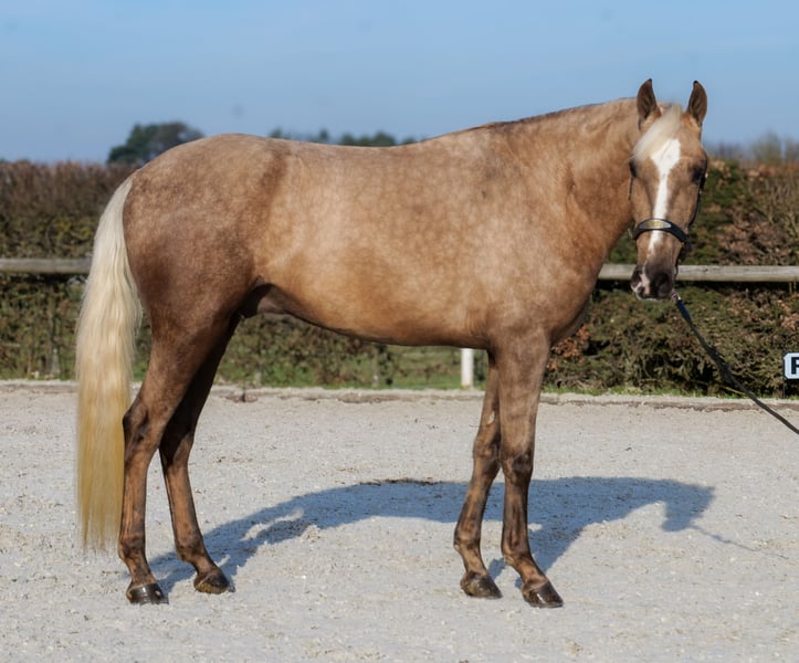 Name: Tamboril Rasse: Cruzado, Kreuzung Geschlecht: Wallach Geburtsdatum: 18.03.2022 Alter: 4 Stockmaß: 1.60m Farbe: Palomino Abstammung: ohne Abstammungsnachweis Charakter: sehr menschenbezogen, gelehrig, verlässlich, geduldig, neugierig, intelligent, mutig, gelassen Ausbildung/Eignung: geritten, Freizeit, Dressur, Barock, Working Equitataion Geländeerfahrung: zuverlässig, unerschrocken, nervenstark, alleine und in der Gruppe Gesundheit: entwurmt, geimpft, Barhufer, ekzemfrei, Zähne kontrolliert, ostheopatisch behandelt Haltung: Box, Paddock Besonderheiten: sehr sitzbequem, gute Grundgangarten, schmiede und verladefromm, herdenverträglich Die genannten Eigenschaften beruhen auf unserer persönlichen Einschätzung und stellen keine zugesicherten Merkmale dar. Preis: 9500€ (Bruttopreis) Haben wir ihr Interesse geweckt? Um Ihnen einen besseren Eindruck von Tamboril zu geben, senden wir Ihnen sehr gerne sein Reitvideo zu. Selbstverständlich stehen wir Ihnen für eine ausführliche Beschreibung des Pferdes, persönliche Beratung und zur Beantwortung aller Ihrer Fragen auch telefonisch zur Verfügung. Bitte schreiben Sie uns hierfür jederzeit eine WhatsApp Nachricht, oder rufen unter folgender Telefonnummer an: +49 15119487595 Unsere Telefonzeiten sind täglich von 7:00 - 13:30 sowie ab 20:00Uhr. Wir freuen uns über Ihre Kontaktaufnahme! Eine klinische oder Röntgenologische Ankaufsuntersuchung kann gerne vom Tierarzt Ihrer Wahl durchgeführt werden. Natürlich kann Tamboril sicher und komfortabel in sein neues Zuhause geliefert werden. Wir kümmern uns um alle notwendigen Vorbereitungen und den Transport, damit Ihr neues Pferd stressfrei, gut betreut, versichert und wohlbehalten im neuen Zuhause ankommt. Zurzeit präsentieren wir eine sorgfältig ausgewählte Vielfalt an Verkaufspferden. Bei uns finden Sie garantiert Ihr Traumpferd. Besuchen Sie uns auch gerne auf unserer Homepage unter: www.marvinsroyalhorses.de. Sehr geehrte Kunden, gerne stellen wir Ihnen unsere Pferde vor und führen, putzen, satteln, longieren, Bodenarbeit sowie Probereiten in der Reithalle, auf dem Platz oder im Gelände ist Ihnen möglich, um Ihr neues Familienmitglied näher kennenzulernen. Dieses kostet für ein Pferd 40€, für jedes weitere 30€ und wird beim Kauf wieder erstattet. Unsere Adresse lautet: Grube Ferdinand 50 53577 Neustadt Wied Google Maps: marvinsroyalhorses