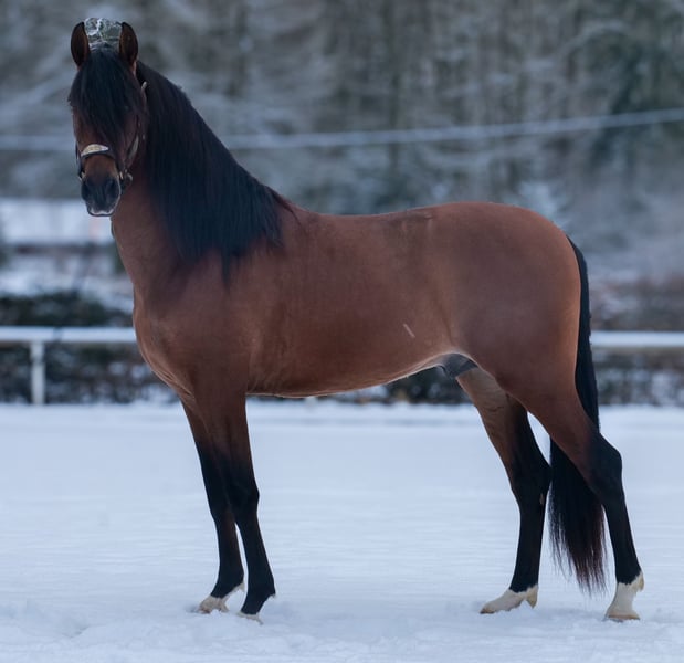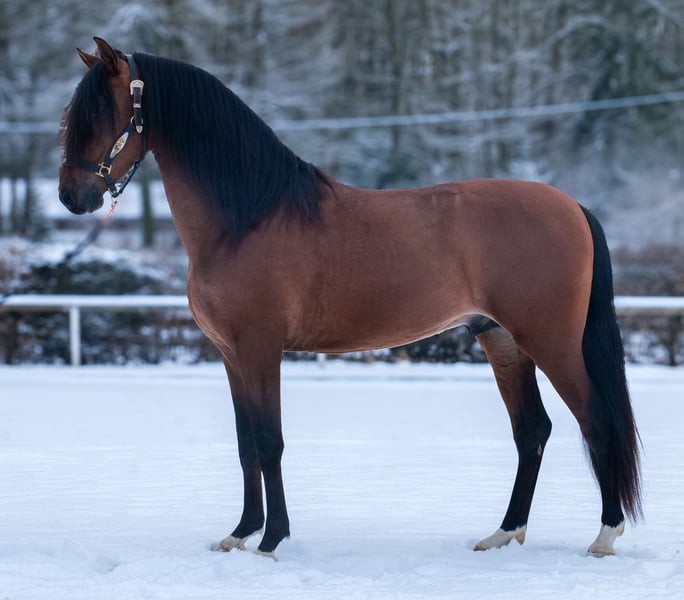 Name: Taranto Breed: Crossbred Sex: Gelding Date of Birth: April 1, 2021 Age: 5 years Height: 1.58 m (approx. 16.1 hh) Color: Bay Pedigree: No pedigree documentation Temperament: Friendly and people-oriented, eager to learn, reliable, patient, curious, intelligent, brave, calm Training/ suitability: Under saddle, leisure riding, dressage, baroque riding, working equitation Trail Experience: Dependable, fearless, resilient, suitable for both alone and in a group Health: Dewormed, vaccinated, barefoot, eczema-free, teeth checked, osteopathically treated Stabling: Box stall, paddock Special Features: Good basic gaits, stands well for farrier and loading, herd-friendly Please note that the qualities listed are based on our personal assessment and do not constitute a formal guarantee. Price: €7,900 (gross) Interested? To give you a better impression of Taranto, we would be happy to send you a riding video. Of course, we are available for a detailed description of the horse, personal consultation, and to answer all your questions via phone. Feel free to contact us anytime via WhatsApp or call us at: +49 151 19487595. Our phone hours are daily from 7:00 AM to 1:30 PM and again from 8:00 PM. We look forward to hearing from you! A clinical or radiological pre-purchase examination can be arranged with your veterinarian. Taranto can be delivered safely and comfortably to his new home. We handle all necessary preparations and transportation so that your new horse arrives stress-free, well-cared-for, insured, and in good health. Currently, we offer a carefully selected range of horses for sale. With us, you are sure to find your dream horse. Visit us also online at: www.marvinsroyalhorses.de. Dear customers, we are happy to introduce you to our horses. You are welcome to lead, groom, saddle, longe, do groundwork, or try riding in our indoor arena, on the riding yard, or in the field to get to know your new family member better. This service costs €40 per horse, with each additional horse €30, and will be refunded upon purchase. Our address: Ferdinand Grube 50 53577 Neustadt-Wied Google Maps: marvinsroyalhorses