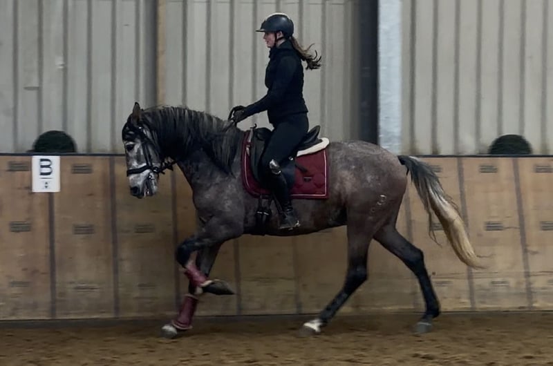 Name: Macareno Rasse: Cruzado, Kreuzung Geschlecht: Wallach Geburtsdatum: 22.04.2020 Alter: 6 Stockmaß: 1.58m Farbe: Schimmel Abstammung: ohne Abstammungsnachweis Charakter: menschenbezogen, verlässlich, geduldig, neugierig, lernwillig, intelligent Ausbildung/Eignung: geritten, Dressur, Freizeit, Working Equitation, Barock, für Kinder geeignet Geländeerfahrung: zuverlässig, unerschrocken, nervenstark, alleine und in der Gruppe Gesundheit: entwurmt, geimpft, Barhufer, ekzemfrei, Zähne kontrolliert Haltung: Box, Paddock, Offenstall Besonderheiten: sehr sitzbequem, gute Grundgangarten, schmiede und verladefromm, herdenverträglich Die genannten Eigenschaften beruhen auf unserer persönlichen Einschätzung und stellen keine zugesicherten Merkmale dar. Preis: 7900€ (Bruttopreis) Haben wir ihr Interesse geweckt? Um Ihnen einen besseren Eindruck von Macareno zu geben, senden wir Ihnen sehr gerne sein Reitvideo zu. Selbstverständlich stehen wir Ihnen für eine ausführliche Beschreibung des Pferdes, persönliche Beratung und zur Beantwortung aller Ihrer Fragen auch telefonisch zur Verfügung. Bitte schreiben Sie uns hierfür jederzeit eine WhatsApp Nachricht, oder rufen unter folgender Telefonnummer an: +49 15119487595 Unsere Telefonzeiten sind täglich von 7:00 - 13:30 sowie ab 20:00Uhr. Wir freuen uns über Ihre Kontaktaufnahme! Eine klinische oder Röntgenologische Ankaufsuntersuchung kann gerne vom Tierarzt Ihrer Wahl durchgeführt werden. Natürlich kann Ibero sicher und komfortabel in sein neues Zuhause geliefert werden. Wir kümmern uns um alle notwendigen Vorbereitungen und den Transport, damit Ihr neues Pferd stressfrei, gut betreut, versichert und wohlbehalten im neuen Zuhause ankommt. Zurzeit präsentieren wir eine sorgfältig ausgewählte Vielfalt an Verkaufspferden. Bei uns finden Sie garantiert Ihr Traumpferd. Besuchen Sie uns auch gerne auf unserer Homepage unter: www.marvinsroyalhorses.de. Sehr geehrte Kunden, gerne stellen wir Ihnen unsere Pferde vor und führen, putzen, satteln, longieren, Bodenarbeit sowie Probereiten in der Reithalle, auf dem Platz oder im Gelände ist Ihnen möglich, um Ihr neues Familienmitglied näher kennenzulernen. Dieses kostet für ein Pferd 40€, für jedes weitere 30€ und wird beim Kauf wieder erstattet. Unsere Adresse lautet: Grube Ferdinand 50 53577 Neustadt Wied Google Maps: marvinsroyalhorses