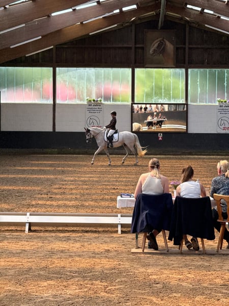8 Jahre alter Wallach, Stockmaß ca. 156 cm, in beste Hände abzugeben. Guapo ist dem Menschen sehr zugewandt, neugierig und schlau. Er liebt ausgiebige Putzeinheiten und ist im Umgang aufmerksam und brav. Er ist in der Dressur in der Klasse A platziert und dieses Jahr erstmalig zwei Springreiter-Wettbewerbe gestartet, bei denen er in beiden direkt hoch platziert war. Er kennt Dressur-Lektionen der Klasse L (Außengalopp, einfache Wechsel, Kurzkehrt) und springt im Parcours fliegende Wechsel. Er ist ein toller Partner für einen ambitionierten Freizeitreiter oder für ein Kind, das in den Turniersport einsteigen möchte. 2024 wurden Guapos Kniebänder in der Klinik gespritzt, da sie aufgrund genetischer Veranlagung zu lang waren. Seit der Behandlung ist er voll belastbar und kann normal geritten werden. Da eine reine Boxenhaltung die Wirkung der Behandlung in 2024 zunichte machen könnte, benötigt Guapo möglichst täglichen Weidegang. Er kann problemlos mit anderen Pferden zusammen auf die Weide, im Anhänger fahren, etc. Guapo ist regelmäßig geimpft und entwurmt. Er läuft seit mehreren Jahren barhuf, kennt aber auch Eisen.