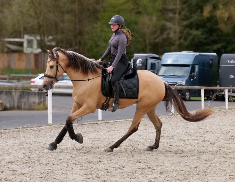 Name: QUIMERA Rasse: Cruzado, Kreuzung Geschlecht: Stute Geburtsdatum: 10.03.2023 Alter: 3 Stockmaß: 1.58m Farbe: Falbe Abstammung: ohne Abstammungsnachweis Charakter: menschenbezogen, neugierig, intelligent, lernwillig, mutig, geduldig, gelassen, unglaublich liebes Jungpferd Ausbildung/Eignung: angeritten, longiert, Bodenarbeit, Dressur, Freizeit, Barock, Working Equitation Geländeerfahrung: aufmerksam, nervenstark, zuverlässig, unerschrocken, alleine und in der Gruppe Gesundheit: entwurmt, geimpft, ekzemfrei, Zähne kontrolliert, osteopathisch behandelt Haltung: Box, Offenstall Besonderheiten: sehr sitzbequem, schmiede und verladefromm, herdenverträglich Die genannten Eigenschaften beruhen auf unserer persönlichen Einschätzung und stellen keine zugesicherten Merkmale dar. Preis: 9900 (Bruttopreis) Haben wir ihr Interesse geweckt? Um Ihnen einen besseren Eindruck von Quimera zu geben, senden wir Ihnen sehr gerne Ihr Reitvideo zu. Selbstverständlich stehen wir Ihnen für eine ausführliche Beschreibung des Pferdes, persönliche Beratung und zur Beantwortung aller Ihrer Fragen auch telefonisch zur Verfügung. Bitte schreiben Sie uns hierfür jederzeit eine WhatsApp Nachricht, oder rufen unter folgender Telefonnummer an: +49 15119487595 Unsere Telefonzeiten sind täglich von 7:00 - 13:30 sowie ab 20:00Uhr. Wir freuen uns über Ihre Kontaktaufnahme! Eine klinische oder Röntgenologische Ankaufsuntersuchung kann gerne vom Tierarzt Ihrer Wahl durchgeführt werden. Natürlich kann Quimera sicher und komfortabel in ihr neues Zuhause geliefert werden. Wir kümmern uns um alle notwendigen Vorbereitungen und den Transport, damit Ihr neues Pferd stressfrei, gut betreut, versichert und wohlbehalten im neuen Zuhause ankommt. Zurzeit präsentieren wir eine sorgfältig ausgewählte Vielfalt an Verkaufspferden. Bei uns finden Sie garantiert Ihr Traumpferd. Besuchen Sie uns auch gerne auf unserer Homepage unter: www.marvinsroyalhorses.de. Sehr geehrte Kunden, gerne stellen wir Ihnen unsere Pferde vor und führen, putzen, satteln, longieren, Bodenarbeit sowie Probereiten in der Reithalle, auf dem Platz oder im Gelände ist Ihnen möglich, um Ihr neues Familienmitglied näher kennenzulernen. Dieses kostet für ein Pferd 40€, für jedes weitere 30€ und wird beim Kauf wieder erstattet. Unsere Adresse lautet: Grube Ferdinand 50 53577 Neustadt Wied Google Maps: marvinsroyalhorses