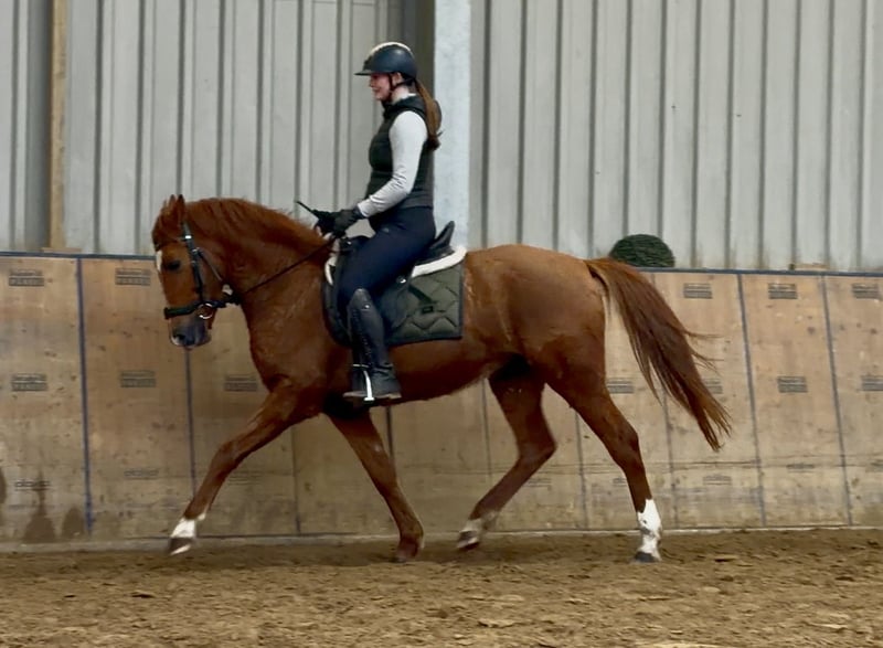 Name: Romina Rasse: Cruzado, Kreuzung Geschlecht: Stute Geburtsdatum: 18.02.2022 Alter: 4 Stockmaß: 1.48m Farbe: Fuchs Abstammung: ohne Abstammungsnachweis Charakter: neugierig, intelligent, lernwillig, mutig, geduldig, gelassen Ausbildung/Eignung: Dressur, Freizeit Geländeerfahrung: aufmerksam, nervenstark, zuverlässig, unerschrocken, alleine und in der Gruppe Gesundheit: entwurmt, geimpft, Barhufer, ekzemfrei, Zähne kontrolliert, ostheopatisch behandelt Haltung: Box, Offenstall Besonderheiten: schmiede und verladefromm, herdenverträglich Die genannten Eigenschaften beruhen auf unserer persönlichen Einschätzung und stellen keine zugesicherten Merkmale dar. Preis: 5500 (Bruttopreis) Haben wir ihr Interesse geweckt? Um Ihnen einen besseren Eindruck von Romina zu geben, senden wir Ihnen sehr gerne Ihr Reitvideo zu. Selbstverständlich stehen wir Ihnen für eine ausführliche Beschreibung des Pferdes, persönliche Beratung und zur Beantwortung aller Ihrer Fragen auch telefonisch zur Verfügung. Bitte schreiben Sie uns hierfür jederzeit eine WhatsApp Nachricht, oder rufen unter folgender Telefonnummer an: +49 15119487595 Unsere Telefonzeiten sind täglich von 7:00 - 13:30 sowie ab 20:00Uhr. Wir freuen uns über Ihre Kontaktaufnahme! Eine klinische oder Röntgenologische Ankaufsuntersuchung kann gerne vom Tierarzt Ihrer Wahl durchgeführt werden. Natürlich kann Romina sicher und komfortabel in ihr neues Zuhause geliefert werden. Wir kümmern uns um alle notwendigen Vorbereitungen und den Transport, damit Ihr neues Pferd stressfrei, gut betreut, versichert und wohlbehalten im neuen Zuhause ankommt. Zurzeit präsentieren wir eine sorgfältig ausgewählte Vielfalt an Verkaufspferden. Bei uns finden Sie garantiert Ihr Traumpferd. Besuchen Sie uns auch gerne auf unserer Homepage unter: www.marvinsroyalhorses.de. Sehr geehrte Kunden, gerne stellen wir Ihnen unsere Pferde vor und führen, putzen, satteln, longieren, Bodenarbeit sowie Probereiten in der Reithalle, auf dem Platz oder im Gelände ist Ihnen möglich, um Ihr neues Familienmitglied näher kennenzulernen. Dieses kostet für ein Pferd 40€, für jedes weitere 30€ und wird beim Kauf wieder erstattet. Unsere Adresse lautet: Grube Ferdinand 50 53577 Neustadt Wied Google Maps: marvinsroyalhorses