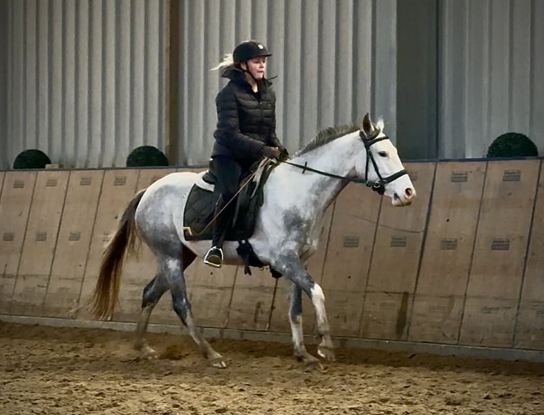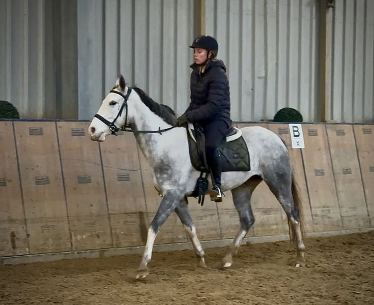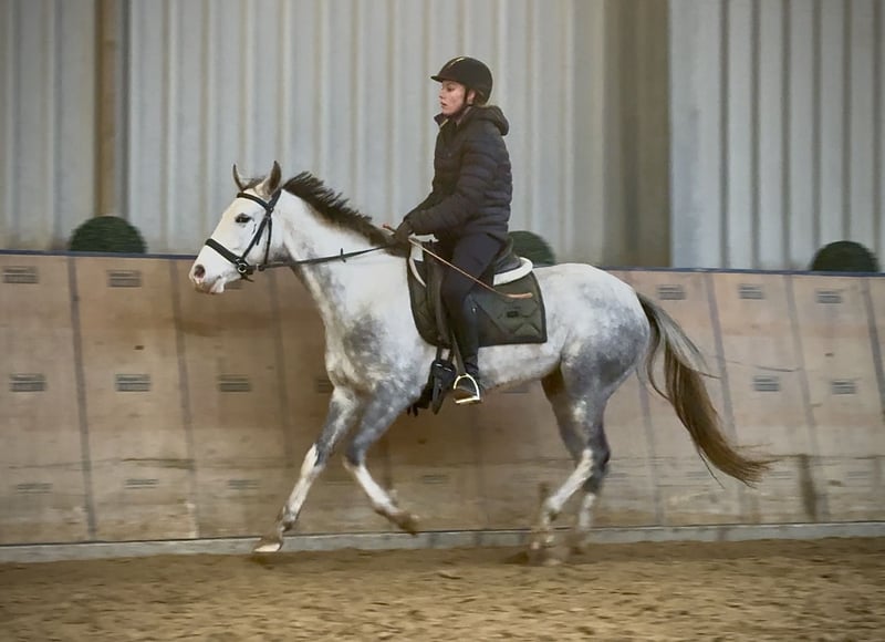 Name: Pandera Rasse: Cruzado Geschlecht: Stute Geburtsdatum: 15.04.2022 Alter: 3 Stockmaß: 1.50m Farbe: Schimmel Abstammung: ohne Abstammungsnachweis Charakter: lernwillig, menschenbezogen, neugierig, intelligent, mutig, geduldig Ausbildung/Eignung: angeritten, Dressur, Freizeit Geländeerfahrung: aufmerksam, zuverlässig, unerschrocken, in der Gruppe Gesundheit: entwurmt, geimpft, Barhufer, ekzemfrei, Zähne kontrolliert, ostheopatisch behandelt Haltung: Box, Offenstall Besonderheiten: schmiede und verladefromm, herdenverträglich Die genannten Eigenschaften beruhen auf unserer persönlichen Einschätzung und stellen keine zugesicherten Merkmale dar. Preis: 4900€ (Bruttopreis) Haben wir ihr Interesse geweckt? Um Ihnen einen besseren Eindruck von Pandera zu geben, senden wir Ihnen sehr gerne Ihr Reitvideo zu. Selbstverständlich stehen wir Ihnen für eine ausführliche Beschreibung des Pferdes, persönliche Beratung und zur Beantwortung aller Ihrer Fragen auch telefonisch zur Verfügung. Bitte schreiben Sie uns hierfür jederzeit eine WhatsApp Nachricht, oder rufen unter folgender Telefonnummer an: +49 15119487595 Unsere Telefonzeiten sind täglich von 7:00 - 13:30 sowie ab 20:00Uhr. Wir freuen uns über Ihre Kontaktaufnahme! Eine klinische oder Röntgenologische Ankaufsuntersuchung kann gerne vom Tierarzt Ihrer Wahl durchgeführt werden. Natürlich kann Pandera sicher und komfortabel in ihr neues Zuhause geliefert werden. Wir kümmern uns um alle notwendigen Vorbereitungen und den Transport, damit Ihr neues Pferd stressfrei, gut betreut, versichert und wohlbehalten im neuen Zuhause ankommt. Zurzeit präsentieren wir eine sorgfältig ausgewählte Vielfalt an Verkaufspferden. Bei uns finden Sie garantiert Ihr Traumpferd. Besuchen Sie uns auch gerne auf unserer Homepage unter: www.marvinsroyalhorses.de. Sehr geehrte Kunden, gerne stellen wir Ihnen unsere Pferde vor und führen, putzen, satteln, longieren, Bodenarbeit sowie Probereiten in der Reithalle, auf dem Platz oder im Gelände ist Ihnen möglich, um Ihr neues Familienmitglied näher kennenzulernen. Dieses kostet für ein Pferd 40€, für jedes weitere 30€ und wird beim Kauf wieder erstattet. Unsere Adresse lautet: Grube Ferdinand 50 53577 Neustadt Wied Google Maps: marvinsroyalhorses