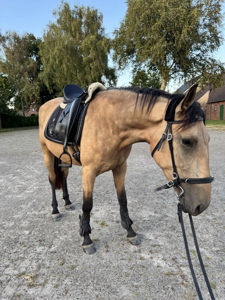 Herzenspferd Lola sucht ihr 5-Sterne-Zuhause - Cruzado mit Lusitano Blut Schweren Herzens habe ich mich dazu entschieden, meine Stute Lola zu verkaufen. Ich liebe dieses Pferd von ganzem Herzen, muss mir jedoch aufgrund meiner derzeitigen gesundheitlichen Situation und meines Berufs eingestehen, dass ich ihr nicht mehr so gerecht werden kann, wie sie es verdient. Lola ist im April 2022 geboren und seit sie ein Absetzer ist, in meinem Besitz. Sie wurde professionell angeritten und durfte anschließend bewusst noch wachsen. In dieser Zeit hat sie noch einmal deutlich zugelegt – sie ist sehr groß, sportlich gebaut und bringt viel Präsenz mit. Sie ist ein perfektes Damenpferd, besonders für die Working Equitation geeignet, da sie sich bereits sehr schön versammelt. Auch Dressur kann ich mir für sie sehr gut vorstellen. Zusätzlich zeigt sie sich talentiert am Sprung. Lola ist immer motiviert und bereit mitzumachen, dabei stets brav. Altersbedingt muss sie natürlich noch viel lernen. Aktuell ist sie nicht antrainiert, daher ist ein Probereiten nicht wirklich möglich. Wie es sich für ein Jungpferd gehört, hat sie manchmal ein paar Flausen im Kopf – dabei ist sie jedoch immer händelbar. Sie ist extrem menschenbezogen, kuschelt sehr gerne, liebt Aufmerksamkeit und spielt für ihr Leben gern. Lola ist feinfühlig, mutig und absolut ehrlich. Gesundheitlich ist sie topfit, war bei mir immer gesund und hatte noch nie gesundheitliche Probleme. Die Zähne wurden frisch gemacht, beide Wolfszähne sind bereits entfernt. Sie hat sehr gute Hufe, steht korrekt da und wird vermutlich noch ein kleines Stück wachsen. Sie zeigt sich definitiv talentiert im Sport, sie kann sich bewegen und bringt viel Potenzial mit. Ich gebe Lola ausschließlich in ein absolutes 5-Sterne-Zuhause ab: • Keine reine Boxenhaltung • Keine Händler • Keine Reitschulen • Abgabe nur mit Schutzvertrag • Gewünscht ist ein liebevolles Zuhause oder eine herzliche Familie Der Preis ist verhandelbar, ein Sattel wäre dabei. Platz vor Preis! Diese Entscheidung fällt mir unendlich schwer, doch Lolas Wohl steht für mich an erster Stelle. Ich wünsche mir für sie einen Menschen, der sie genauso liebt und fördert, wie sie es verdient. ⸻ Telefonisch unter 017620333189 kann man sich bei mir melden :)